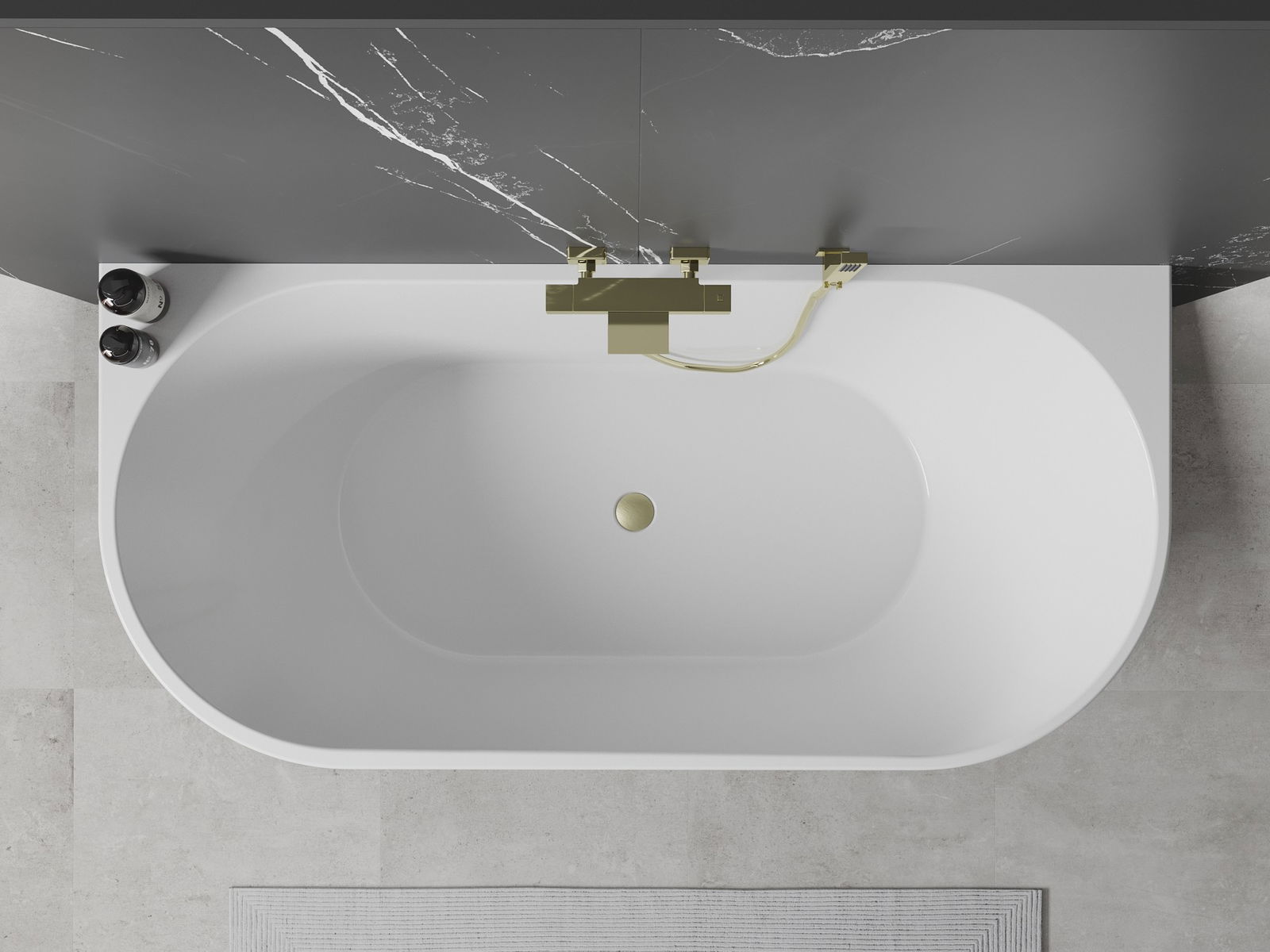 Mexen Oval свободностояща вана за стена 170 x 80 см, бяла/черна, преливник