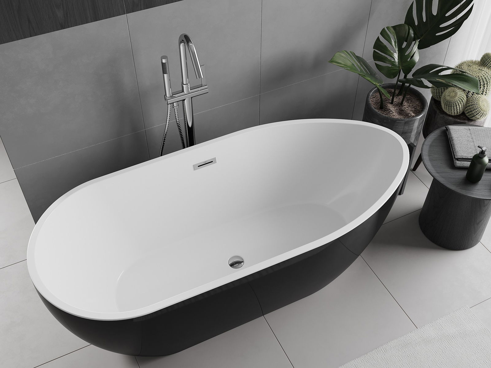 Свободностоящата вана Mexen Eos с размери 170 x 75 см е идеален избор за модерни бани. Изработена от висококачествен санитарен акрил, тя съчетава елегантността на бял и черен цвят с хромиран завършек. Нейната овална форма и подходяща дълбочина осигуряват комфорт при къпане. Ваната разполага с преливен отвор и отточник в средата, което увеличава нейната функционалност. Допълнително, устойчивостта на матовост и UV лъчи гарантира дълготраен блясък на продукта.
