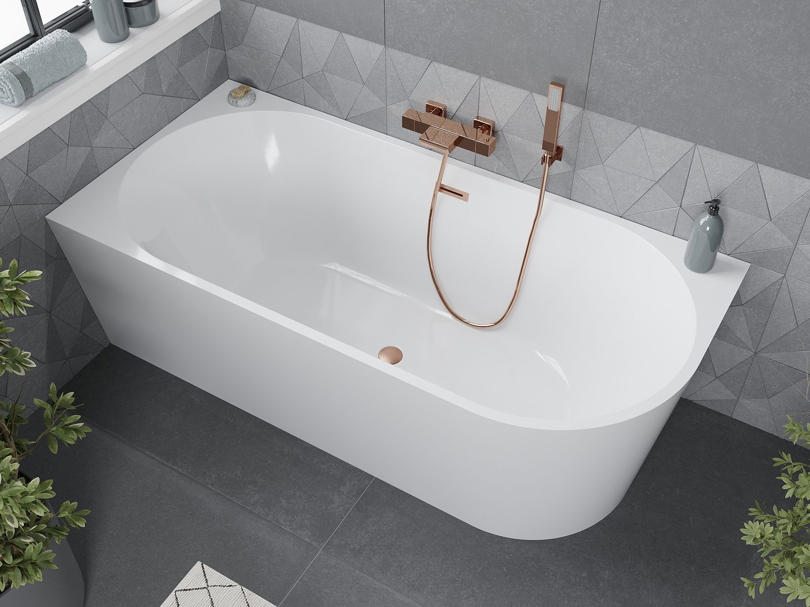 Mexen Mia свободно стояща ъглова вана лява 150 x 75 см, бяла, с медно матово