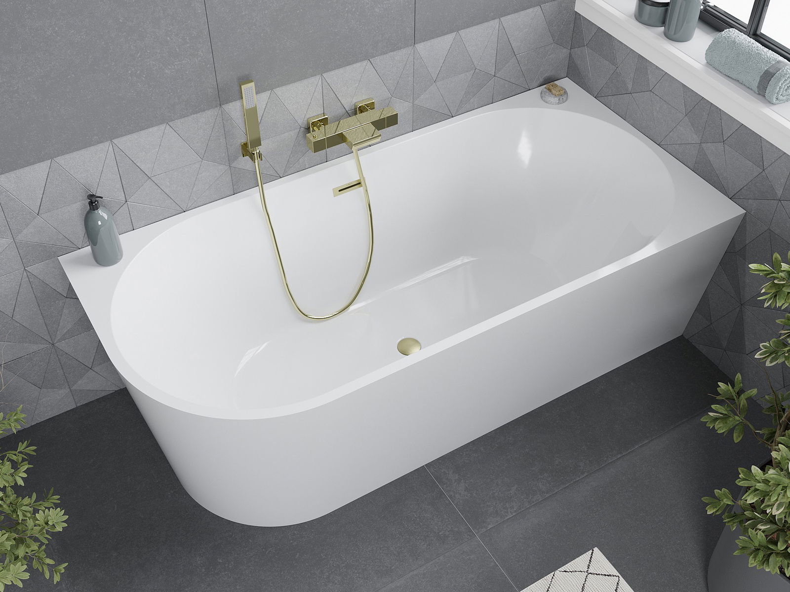 Mexen Mia е елегантна свободностояща вана с размери 160 x 75 см, идеална за съвременни бани. Високото качество на санитарния акрил осигурява дълготрайност и устойчивост на замъгляване. Нейният луксозен бял цвят в комбинация със златист матов завършек придава изключителен стил. Ваната е проектирана като ъглова, което позволява спестяване на място. Отворът за преливане и включеният сифон с щепсел клик-клак увеличават удобството при употреба.