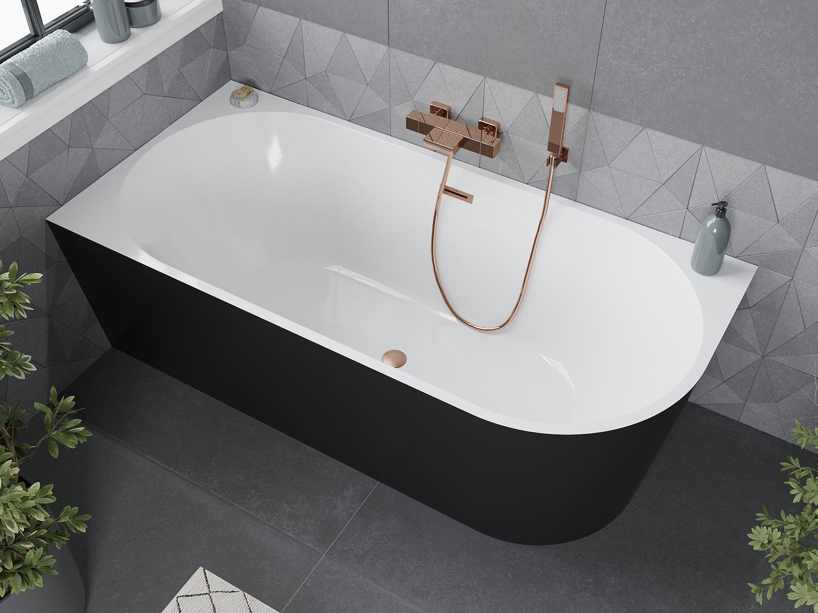 Mexen Mia свободностояща ъглова лява вана 170 х 80 см, бяла/черна, четкан