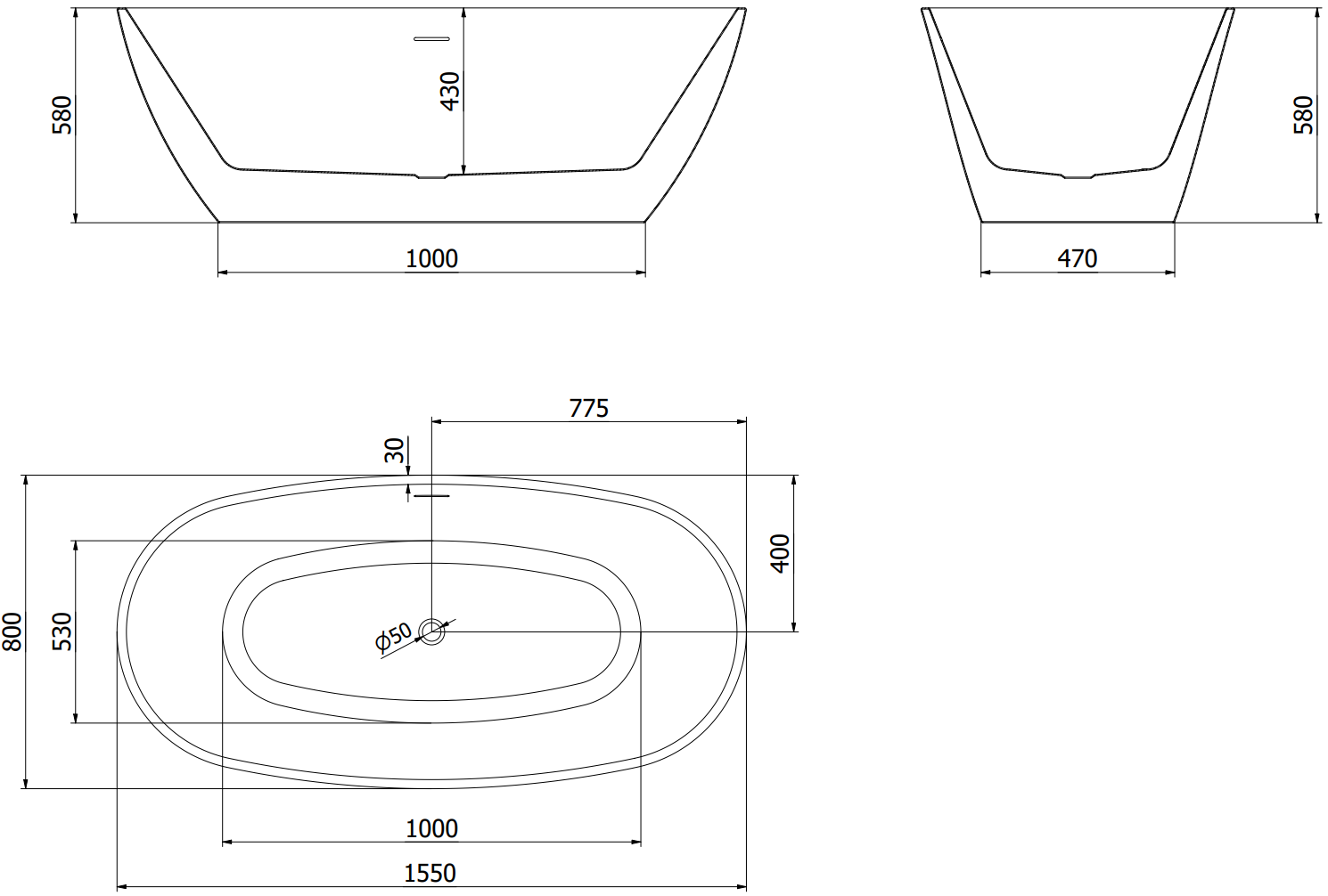 Mexen Eris самостоятелна вана 155 x 80 см, бяла, бял преливник - 53441558000-20