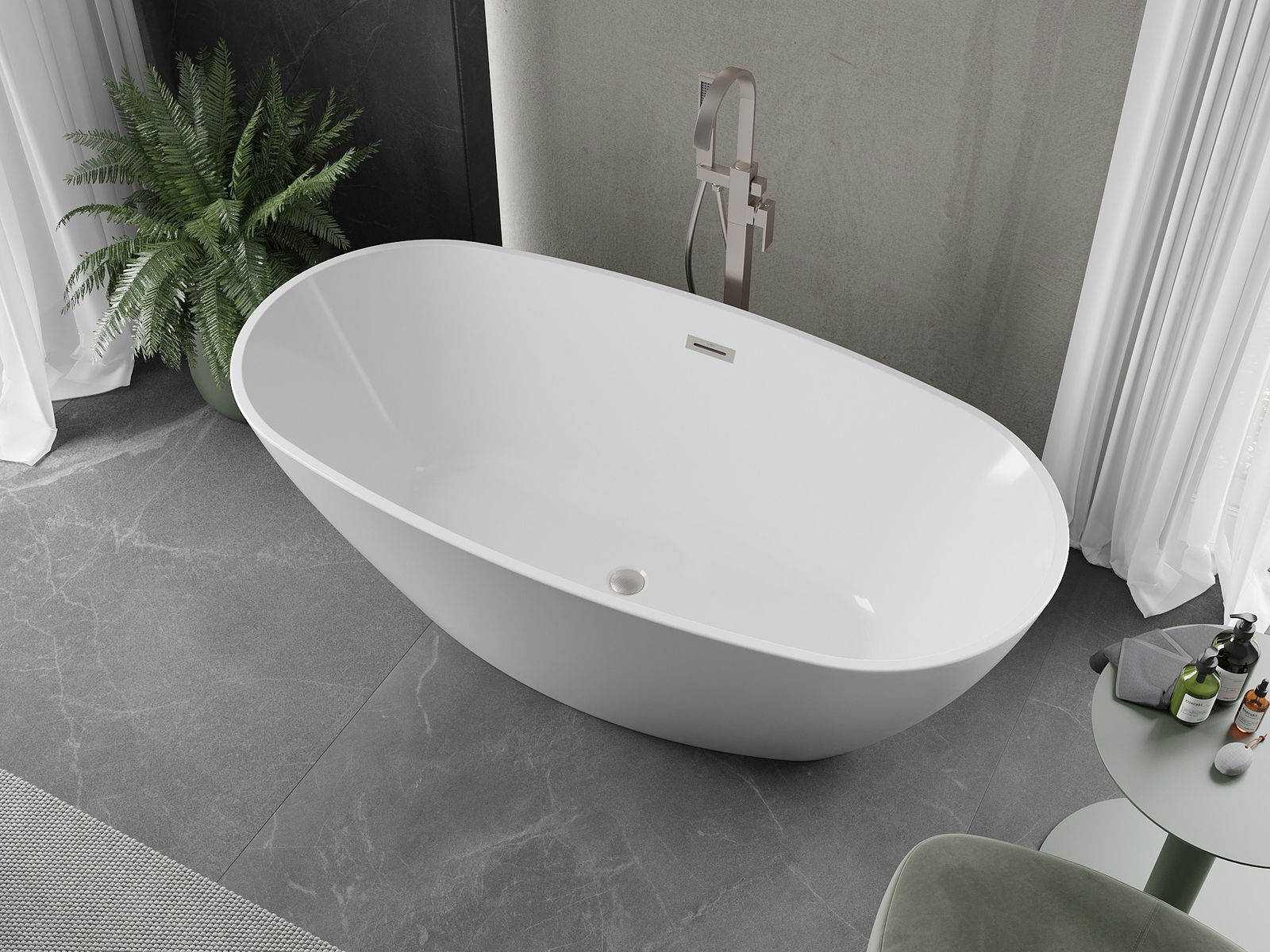 Mexen Eris свободностояща вана 180 x 80 см, бяла, преливна четкана никел