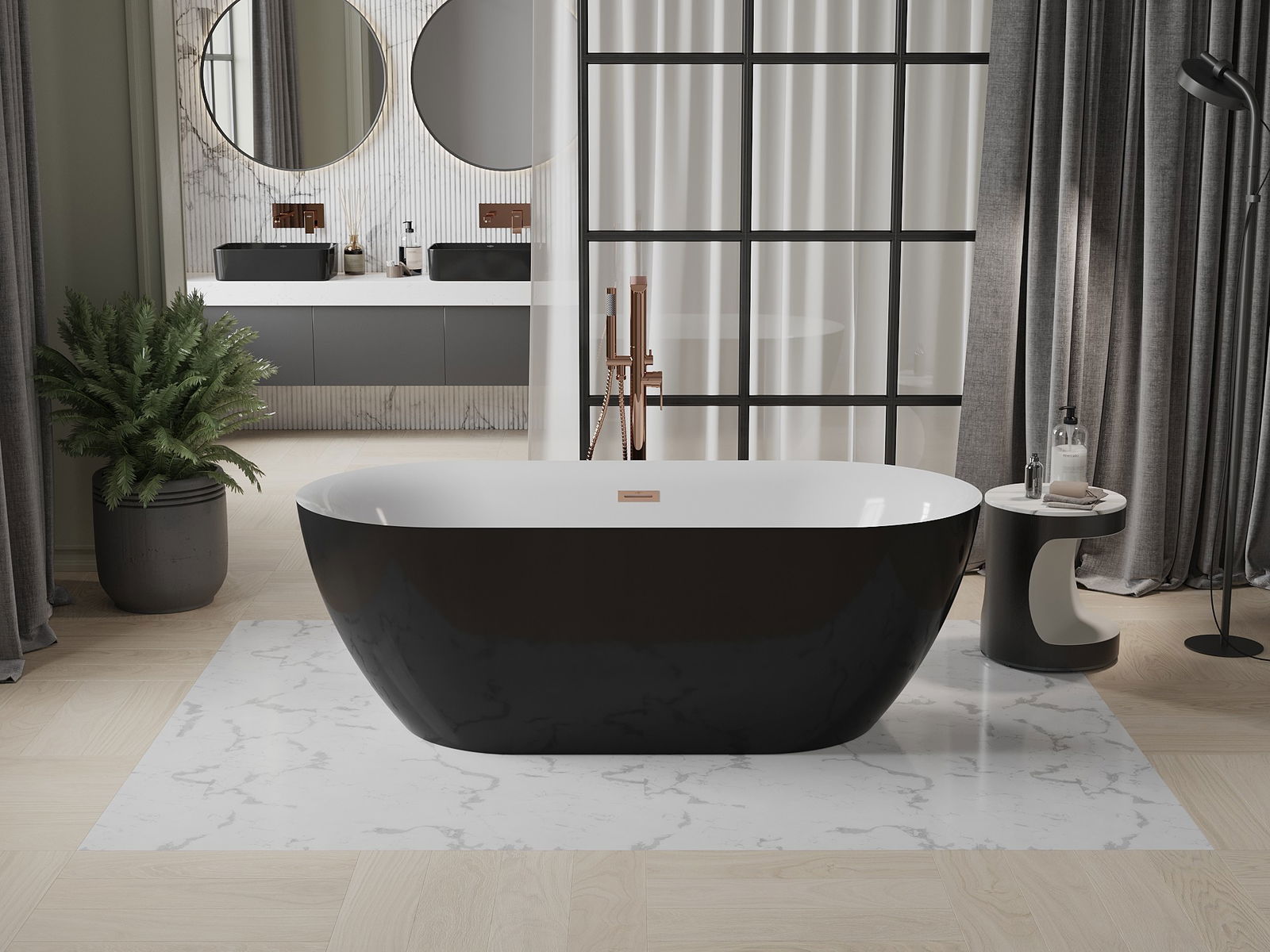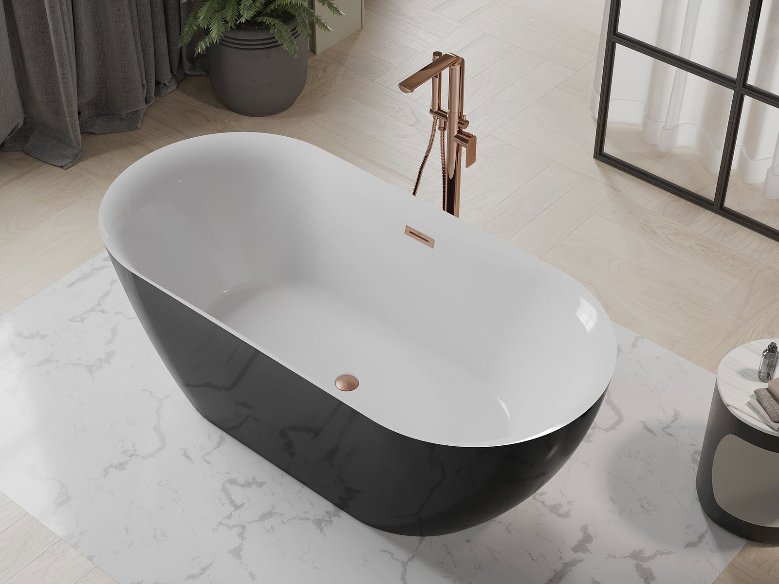 Mexen Roxy свободностояща вана 170 x 80 см, бяла/черна, преливник от четкана мед - 51201708075-65