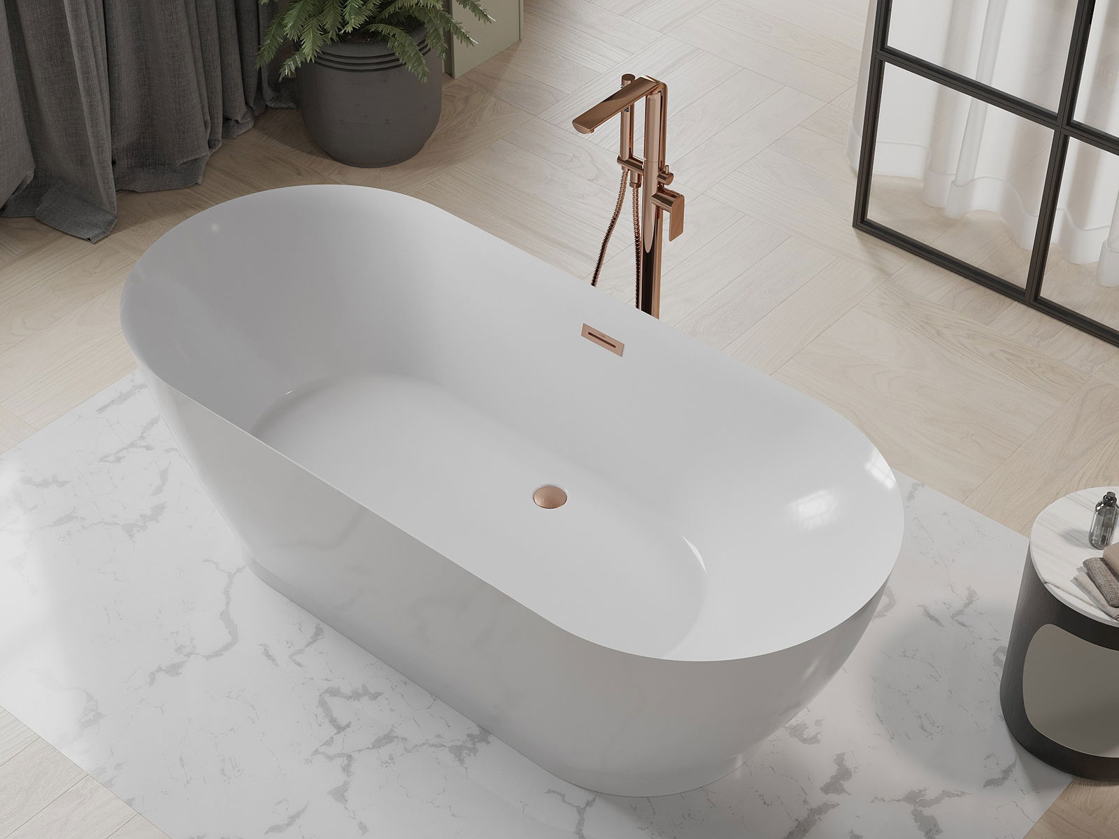 Mexen Roxy самостоятелна вана 180 x 85 cm, бяла, матиран меден преливник - 51201808500-65
