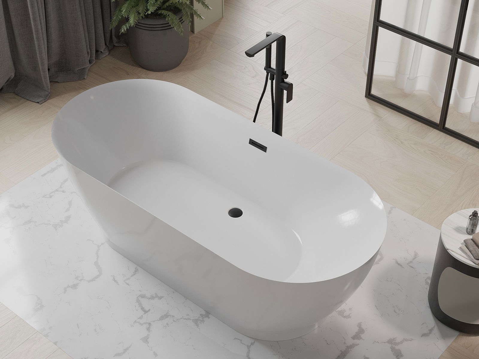 Mexen Roxy свободностояща вана 180 x 85 см, бяла, преливник черен - 51201808500-70