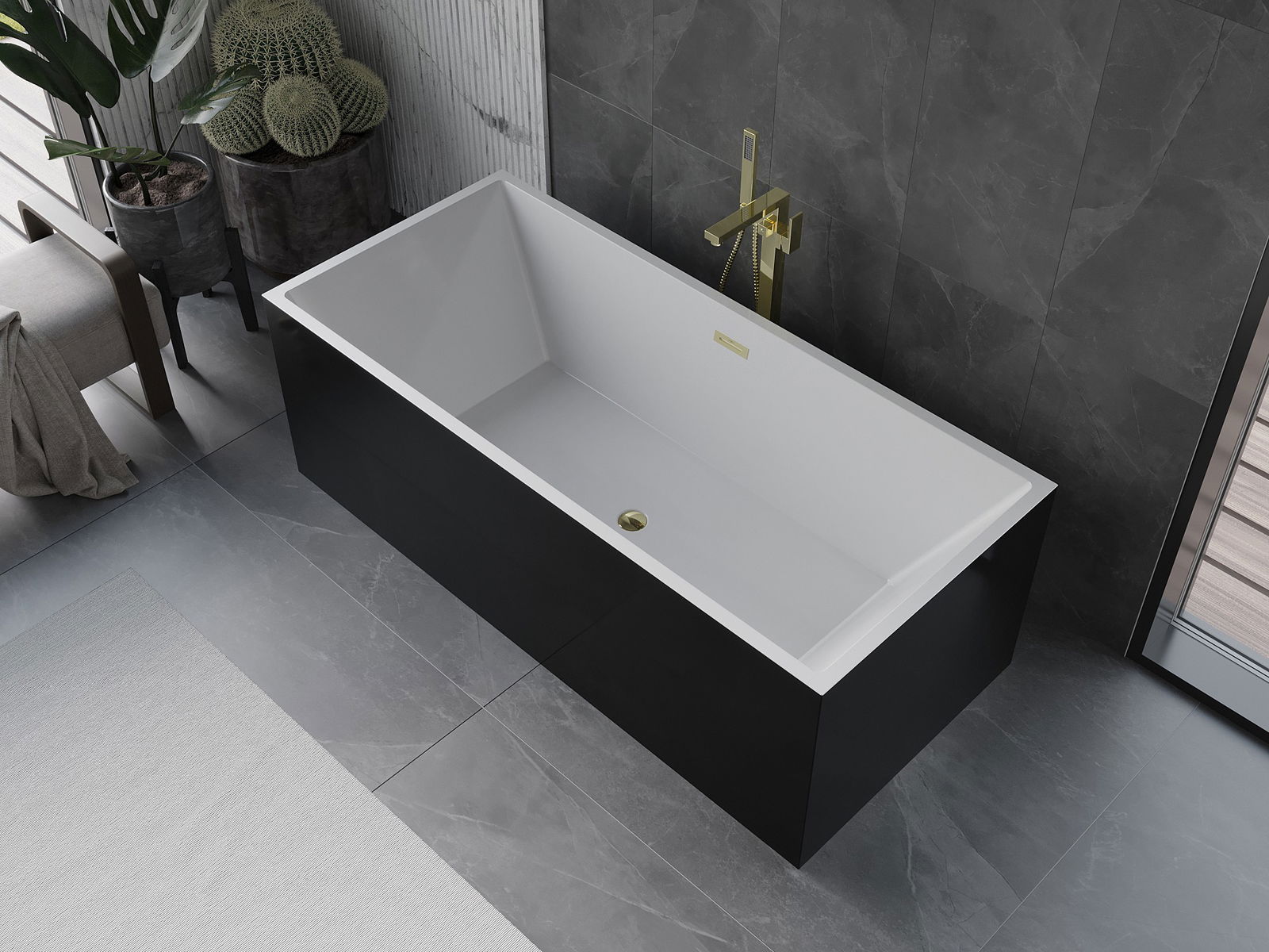 Mexen Vigo свободно стояща вана 178,5 x 80 см, бяла/черна, преливник златен - 51251788075-50