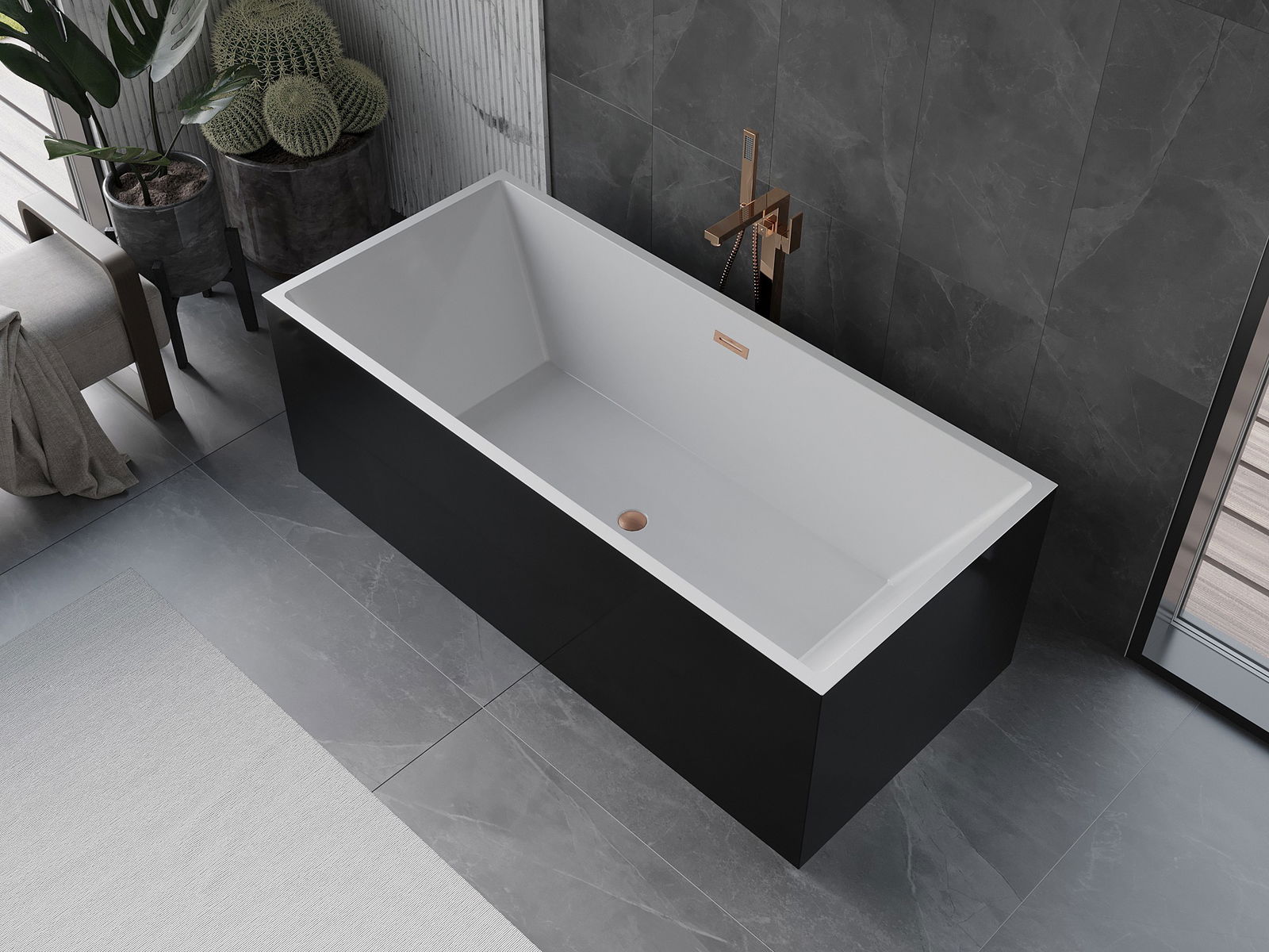 Mexen Vigo самостоятелна вана 178,5 x 80 cm, бяла/черна, преливане матирана мед - 51251788075-65