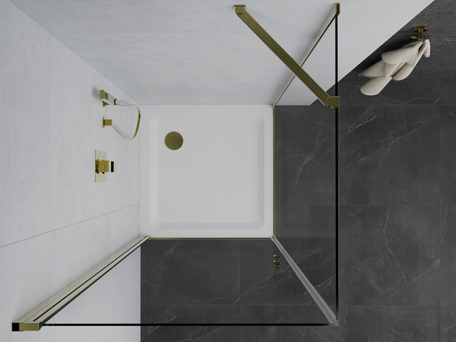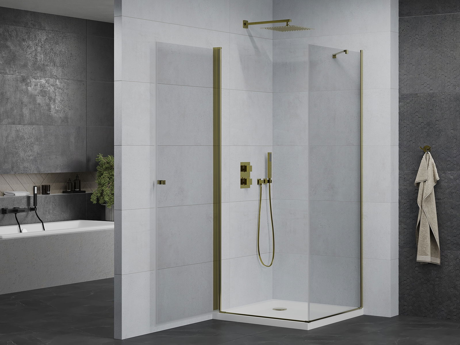 Mexen Pretoria душ кабина отваряема 80 x 80 см, прозрачна, златна + корито Flat - 852-080-080-50-00-4010