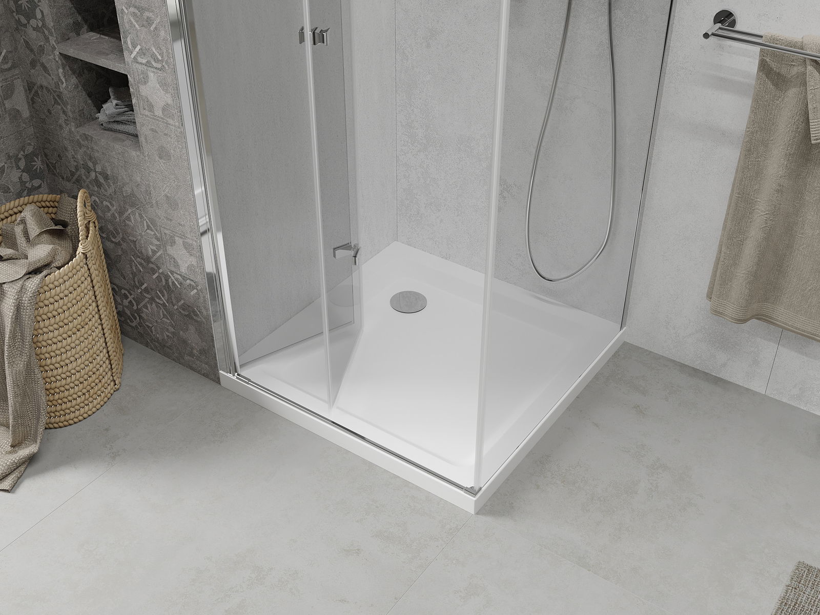 Способността да сгънете вратата, както отвън, така и отвътре, ви позволява да получите повече място, когато не използвате душа. Това е идеално решение за по -малки бани, максимално с помощта на наличната повърхност.