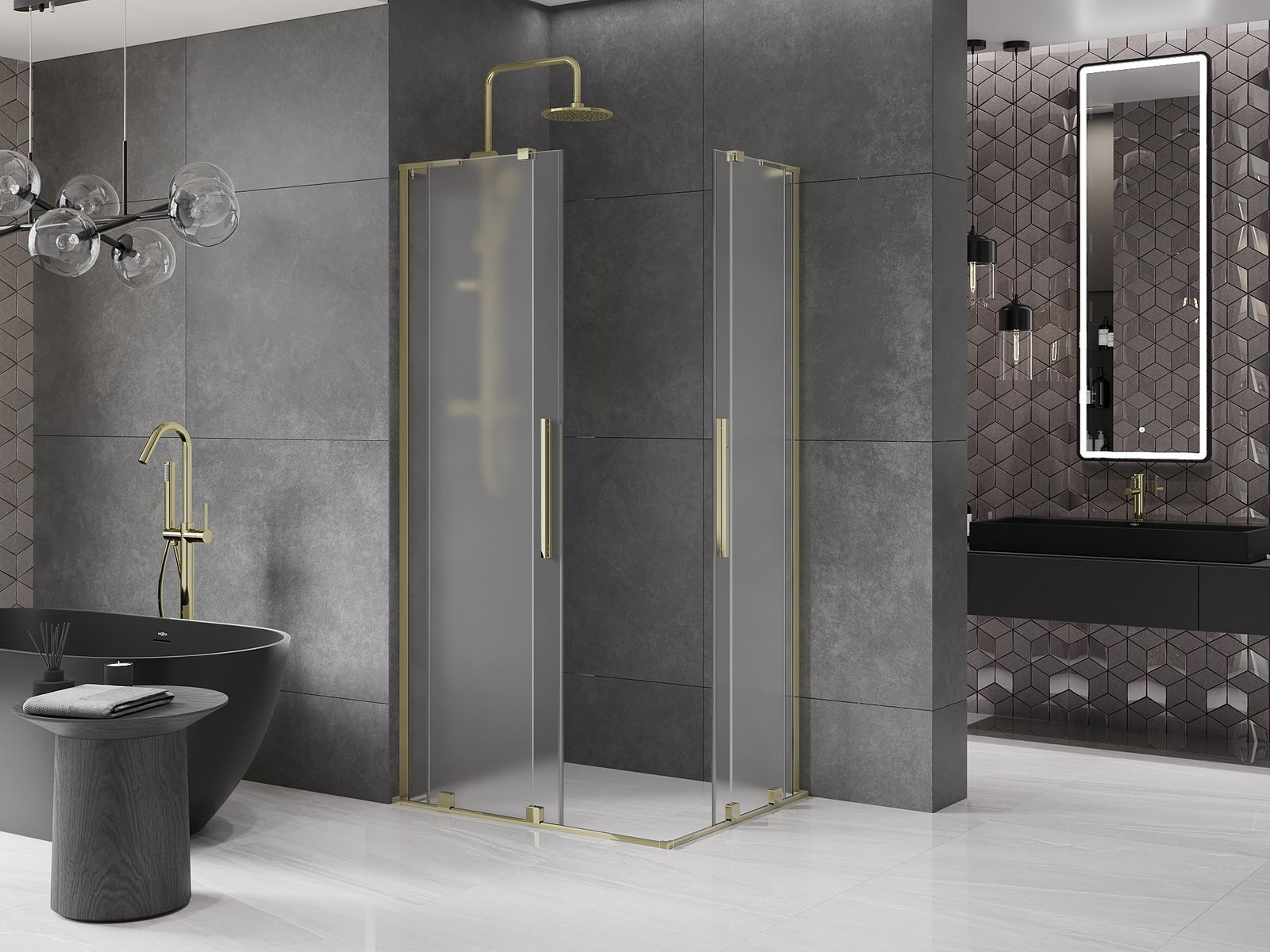 Mexen Velar L Duo плъзгаща се душ кабина 90 x 80 cm, матирано, златно - 871-090-080-02-33-50