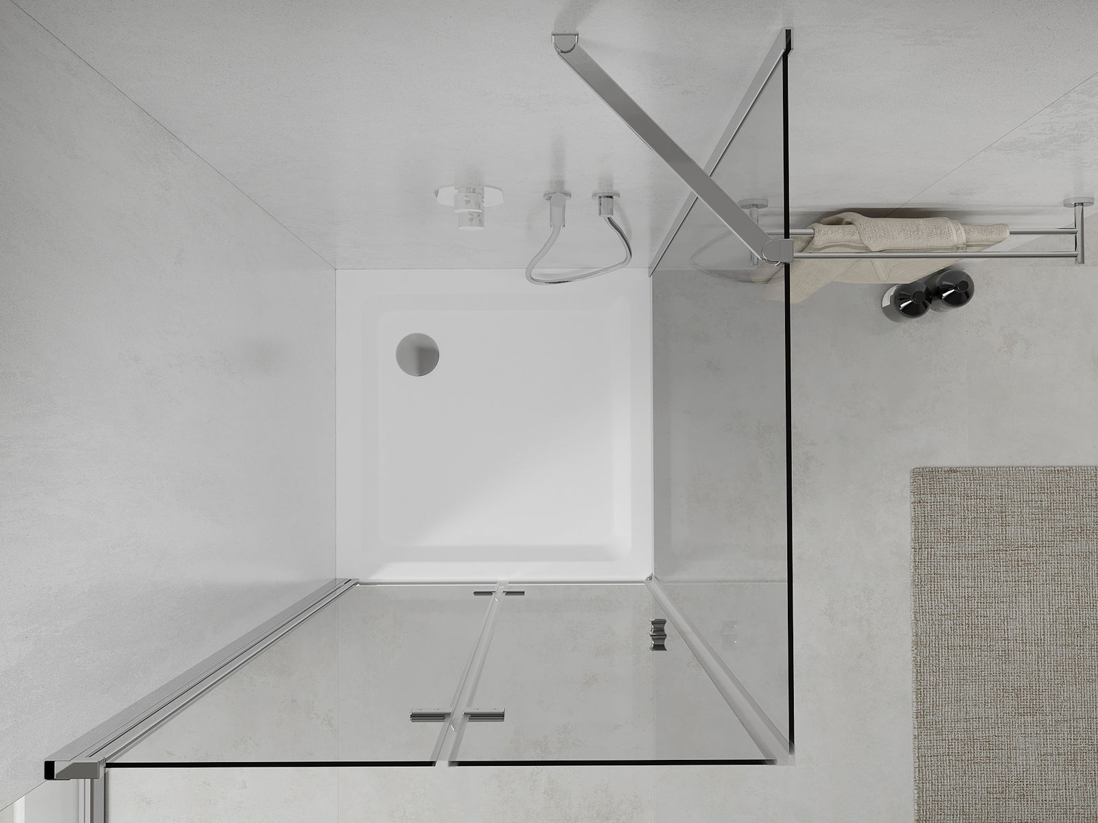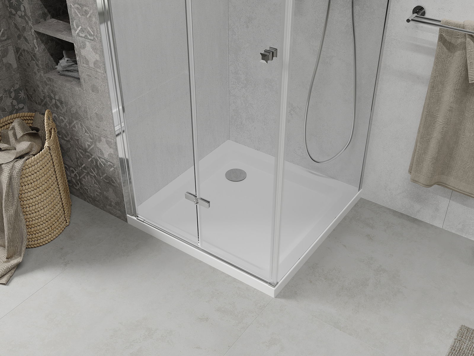 Mexen Lima сгъваема душ кабина 100 x 100 см, прозрачна, хром + поддушово корито Flat - 856-100-100-01-00-4010