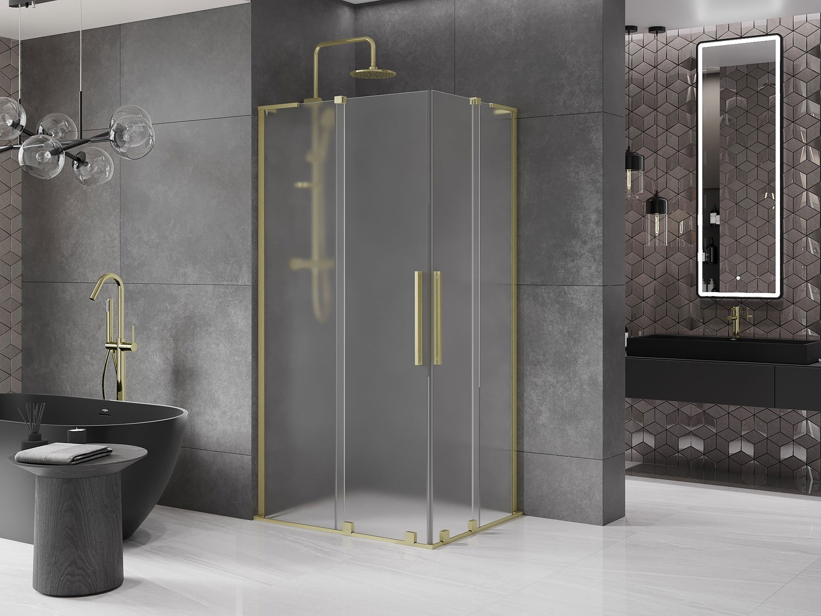 Mexen Velar L Duo плъзгаща се душ кабина 100 x 90 cm, матирано, четкавано златно - 871-100-090-02-33-55