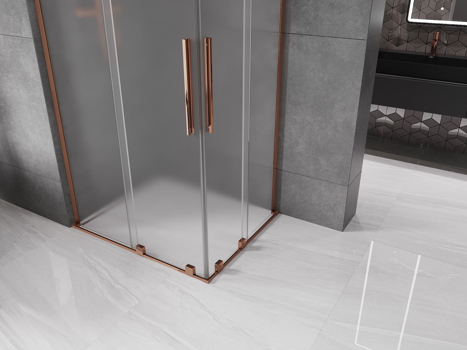 Mexen Velar L Duo плъзгаща душ кабина 90 x 80 см, матирано, розово злато - 871-090-080-02-33-60