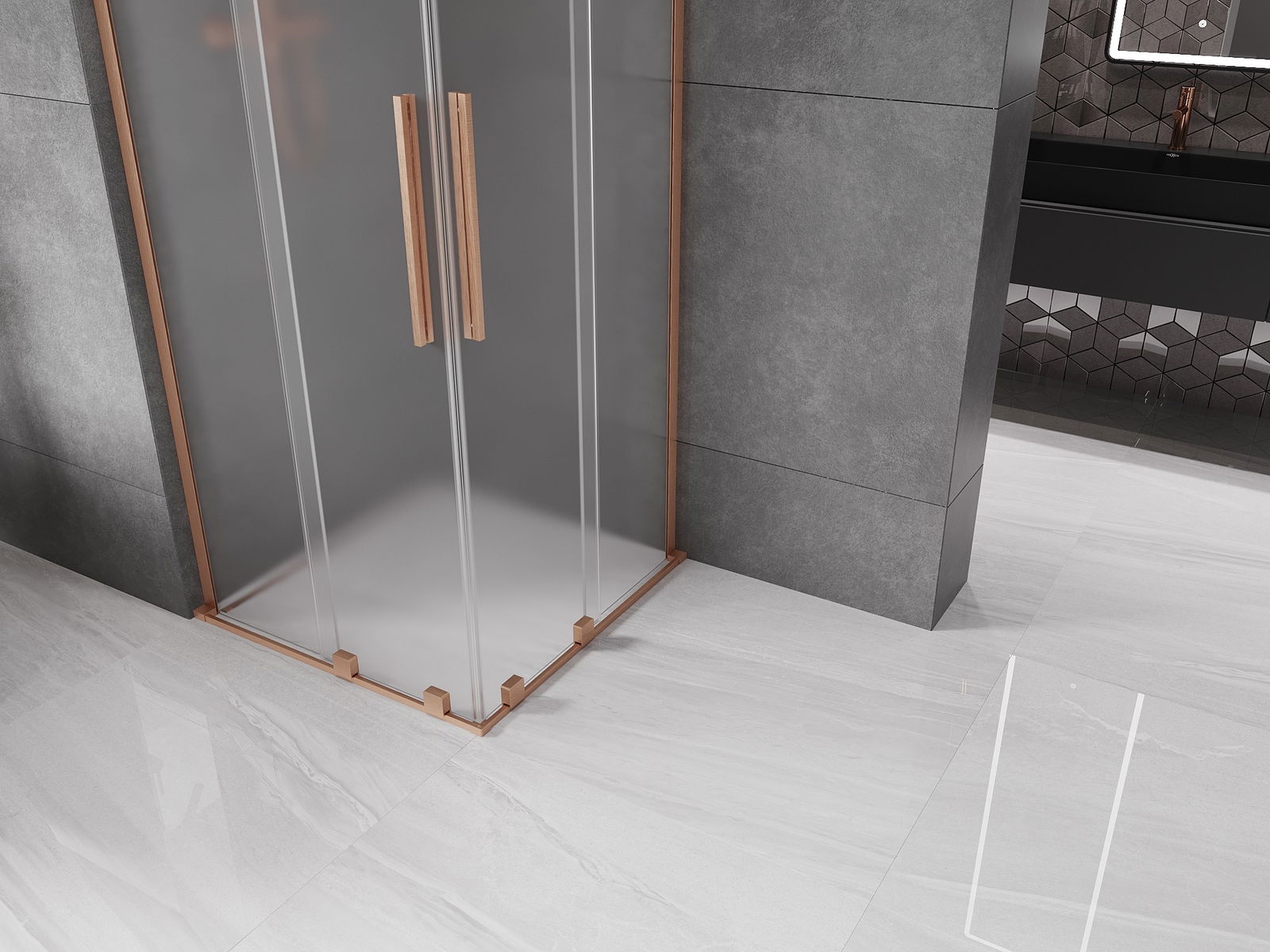 Mexen Velar L Duo плъзгаща душ кабина 80 x 80 см, матирано стъкло, четкан мед - 871-080-080-02-33-65