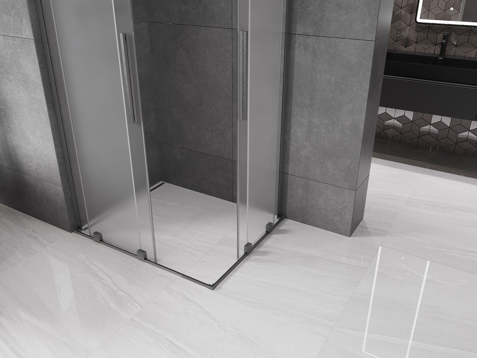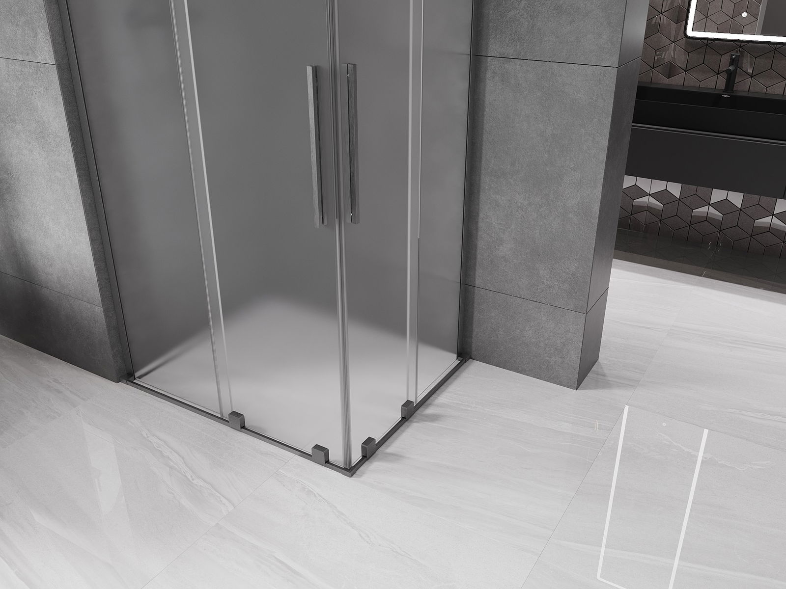 Mexen Velar L Duo плъзгаща се душ кабина 90 x 80 см, матирано стъкло, четка метален сив - 871-090-080-02-33-66