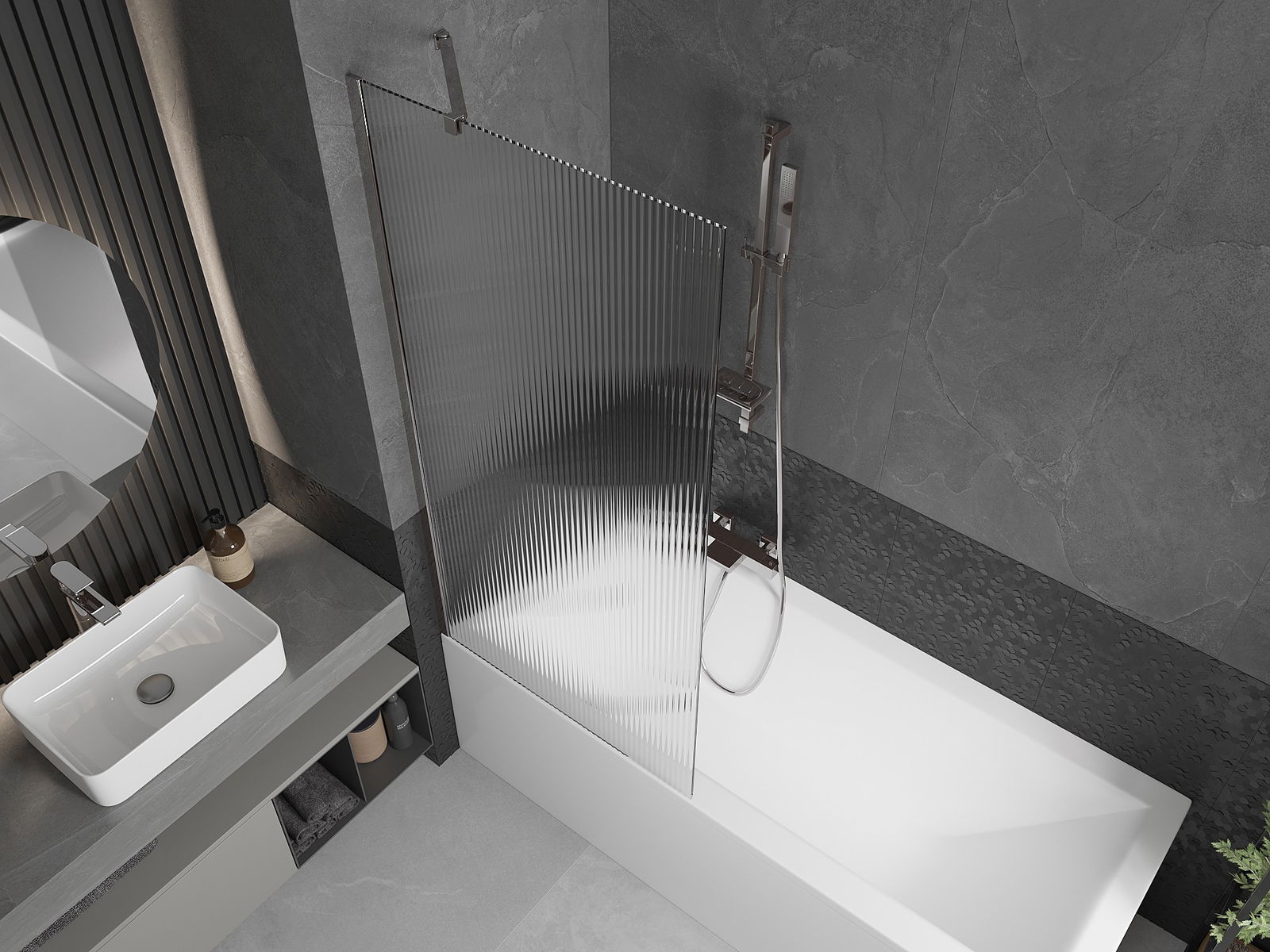 Mexen Next параван за вана 1-крилен 80 x 150 см, ивици, хром - 895-080-000-00-09-01