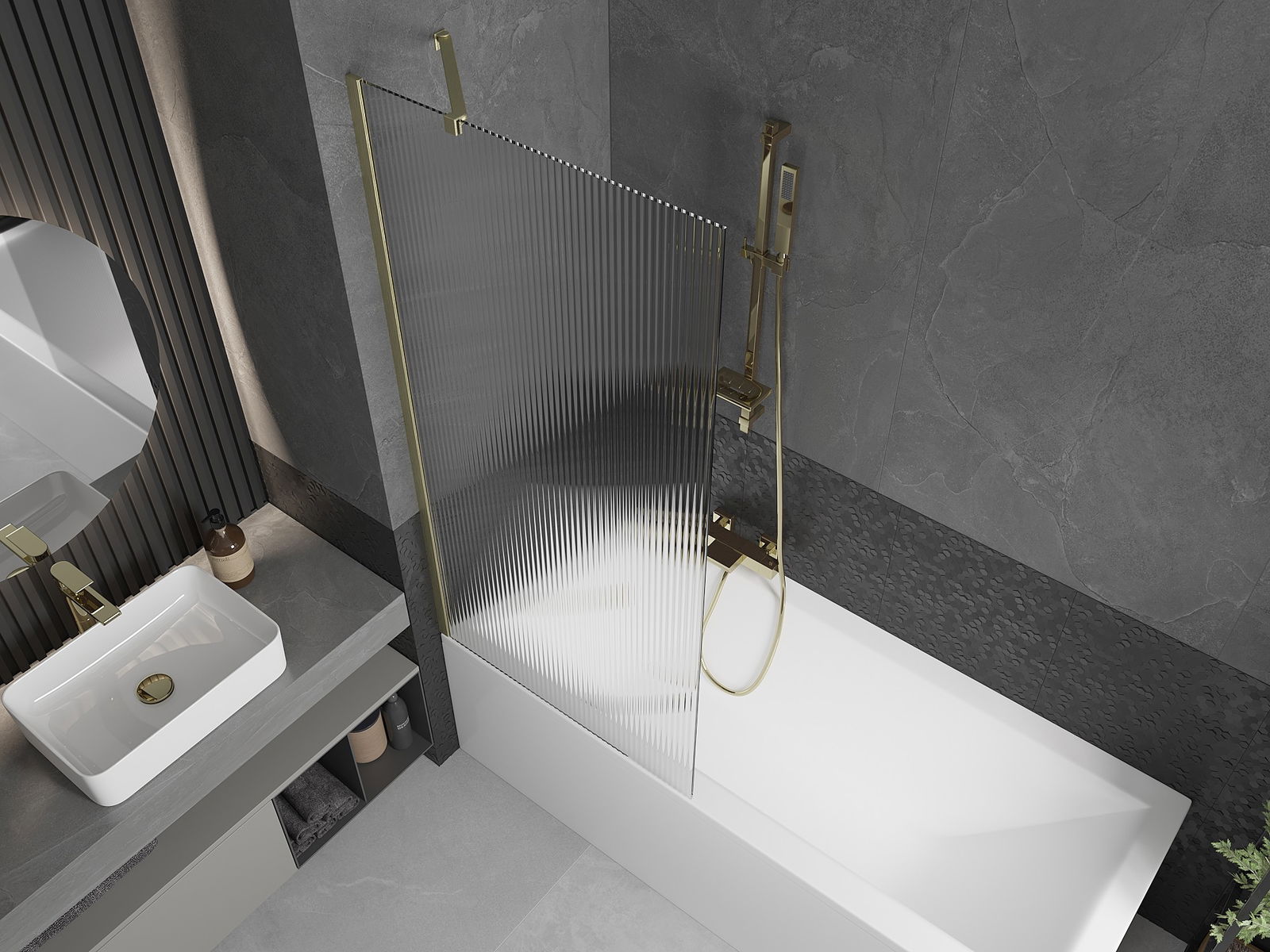 Mexen Next параван за вана 1-крилен 80 x 150 см, райе, златист мат - 895-080-000-00-09-55