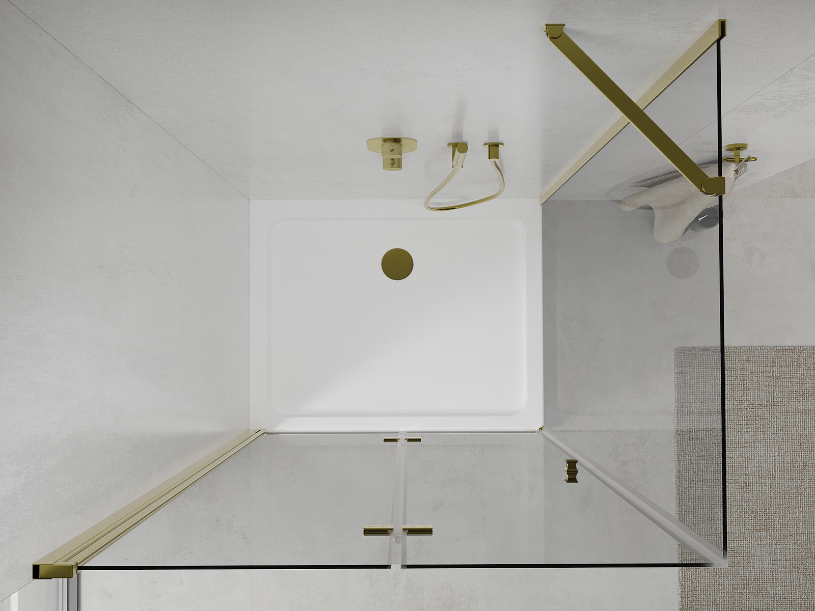 Mexen Lima сгъваема душ кабина 100 x 70 см, прозрачна, златна + поддушова тава Flat - 856-100-070-50-00-4010