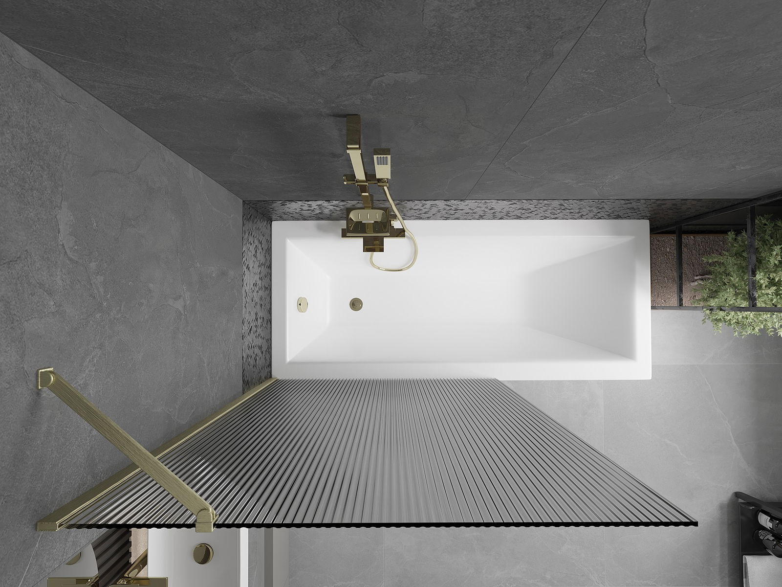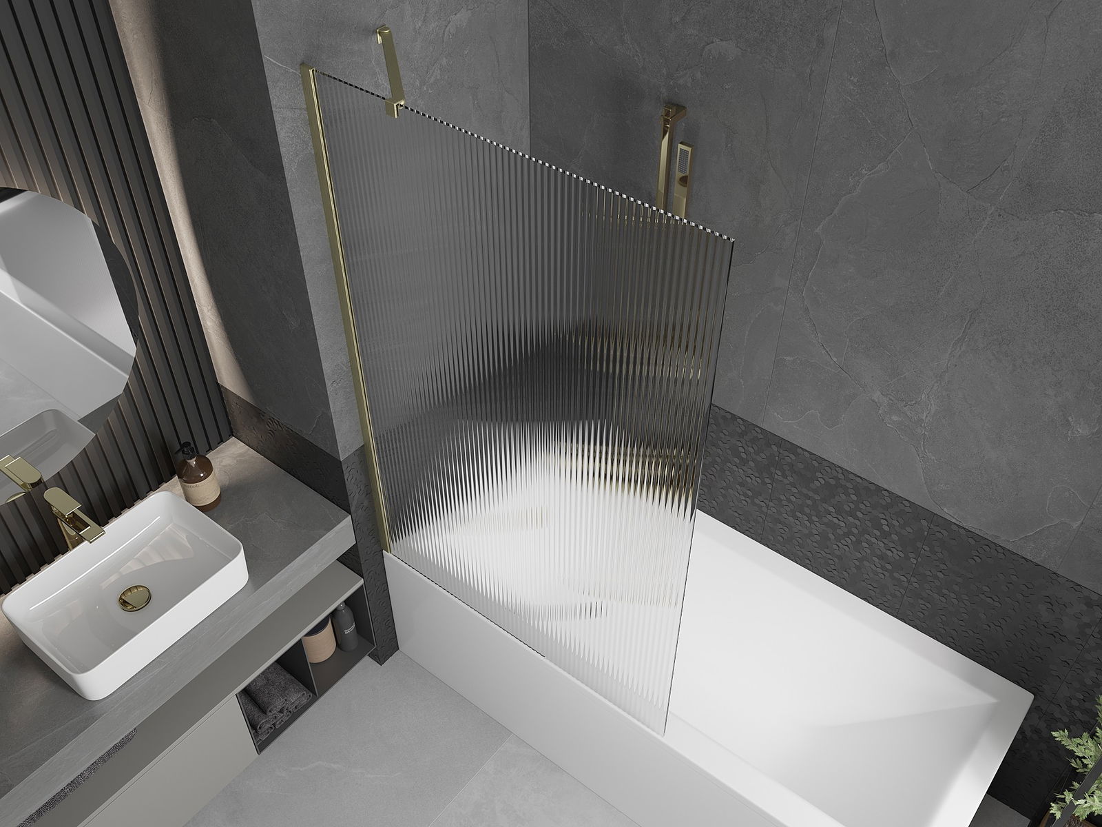 Mexen Next параван за вана с 1 крило 100 x 150 см, райета, златен мат - 895-100-000-00-09-55