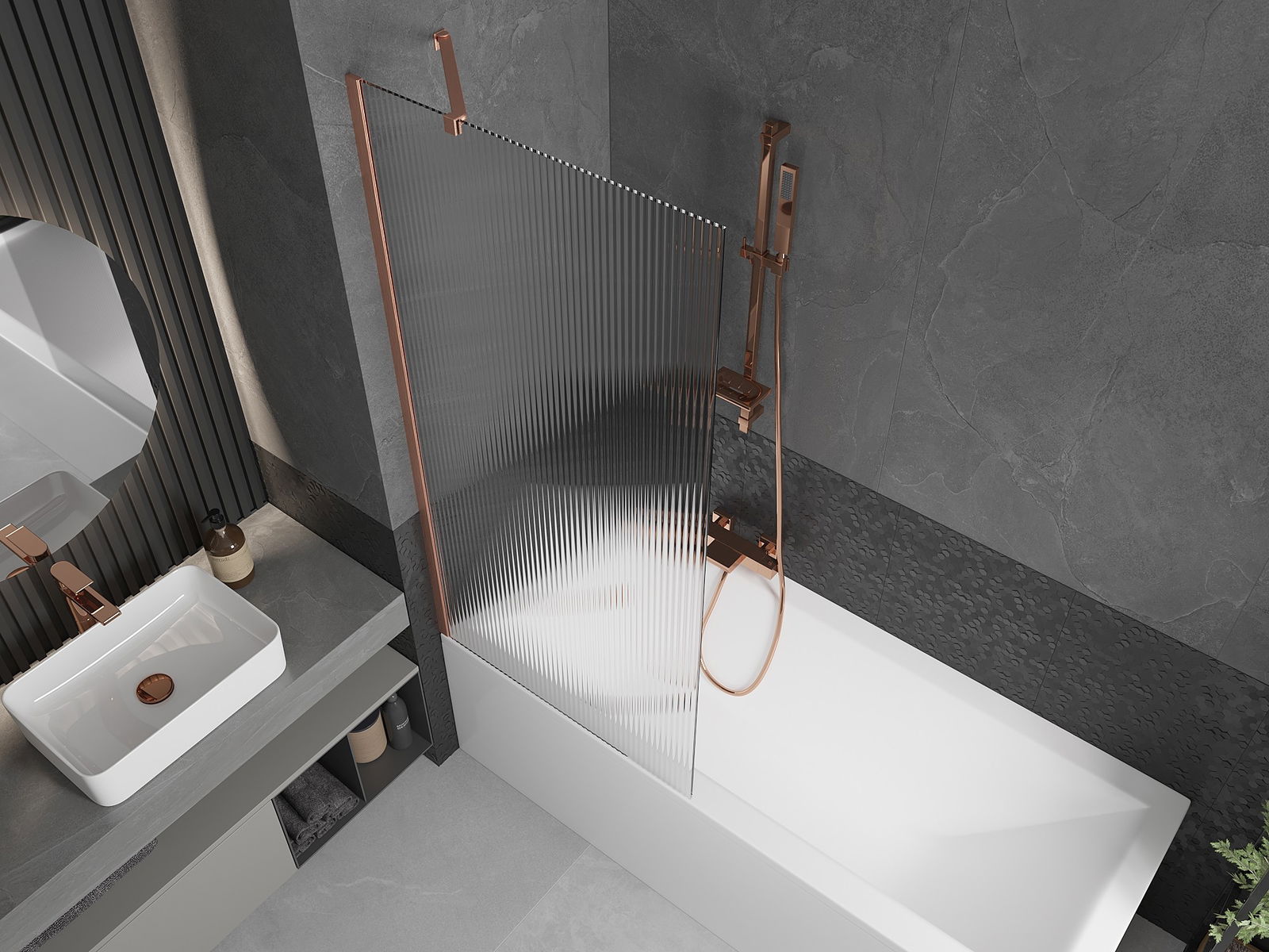 Mexen Next параван за вана 1-крилен 80 x 150 cm, ивици, матирана мед - 895-080-000-00-09-65