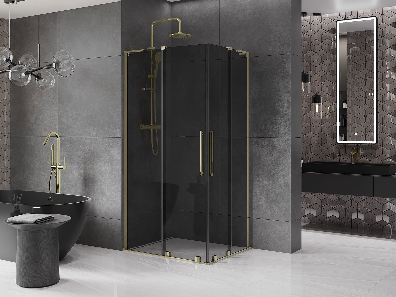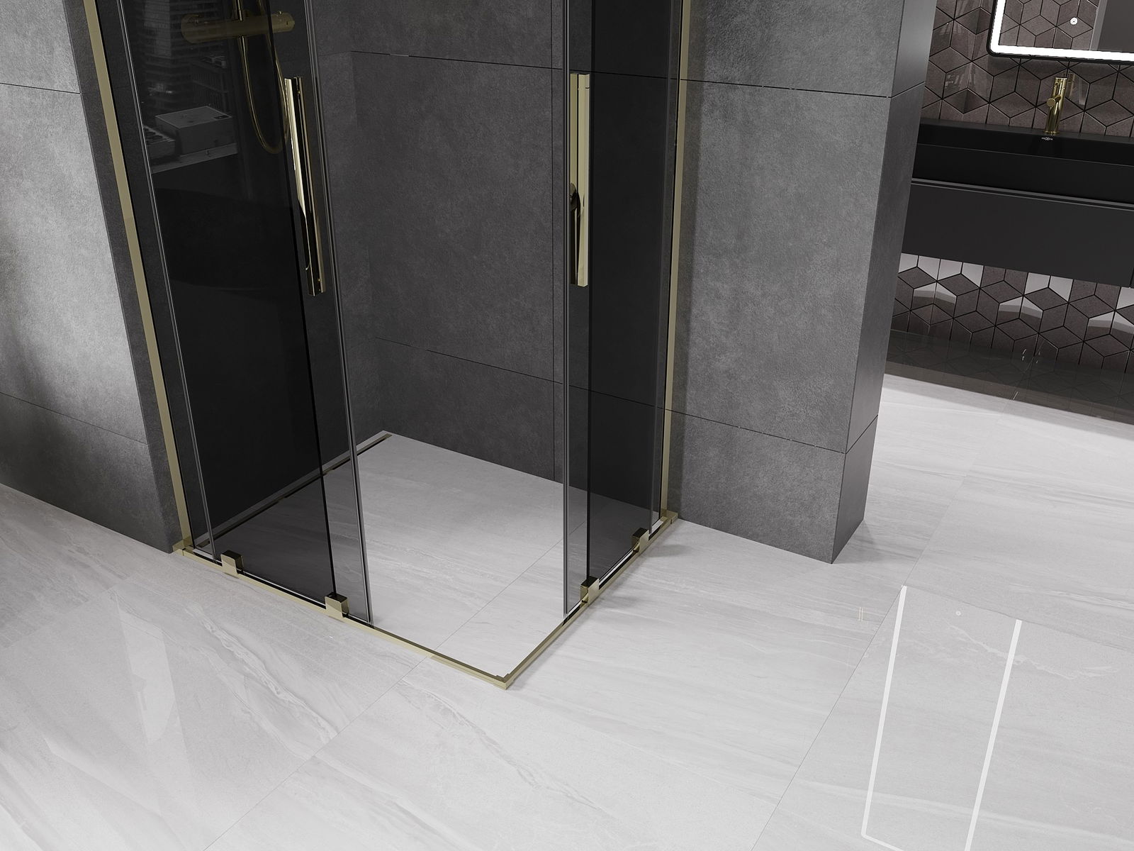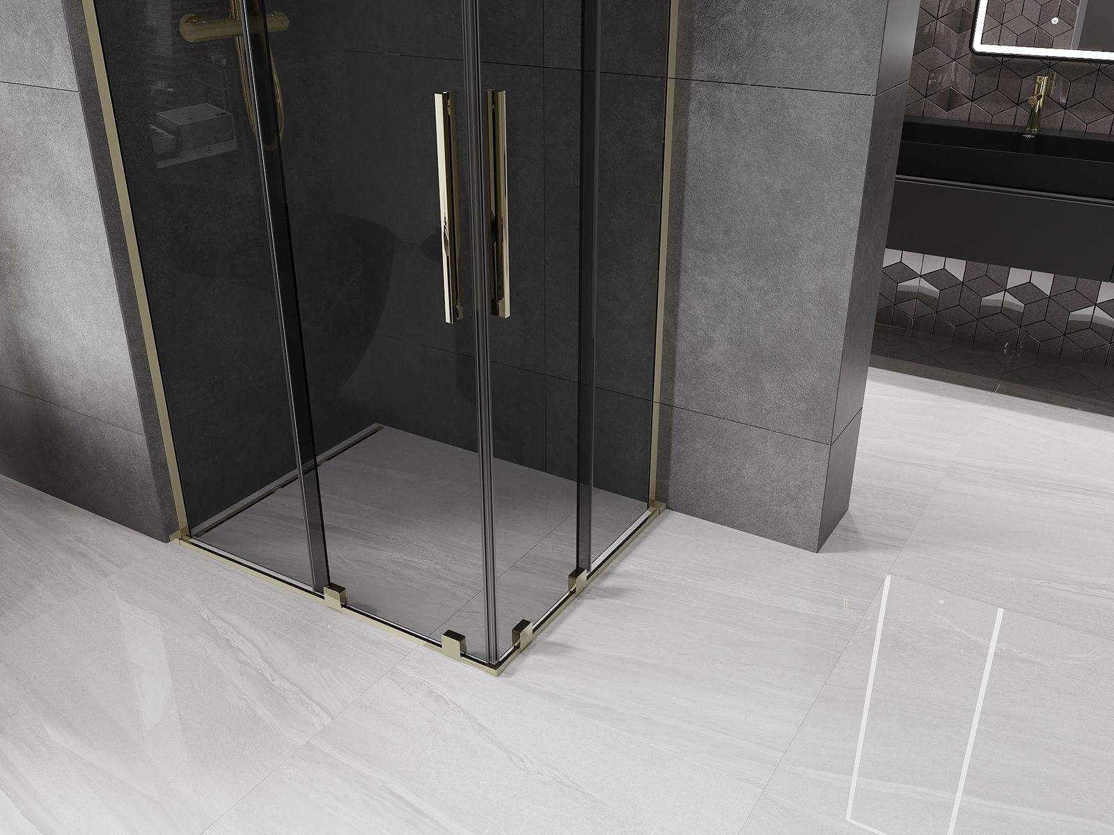Mexen Velar L Duo плъзгаща душ кабина 90 x 80 см, графит, злато - 871-090-080-02-43-50