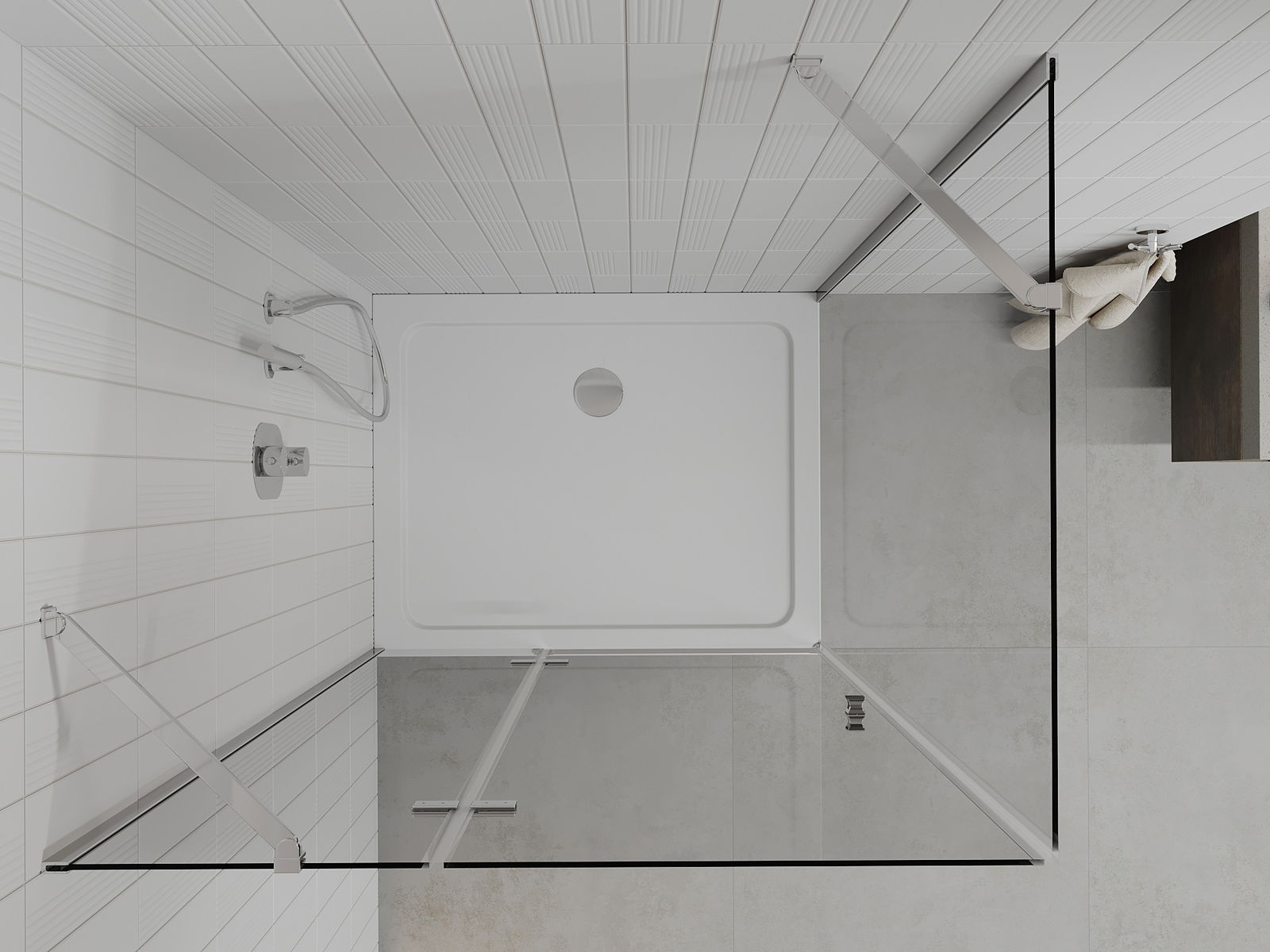 Удобната и практична дръжка е изработена от здрав и устойчив метал. Модерната форма в съчетание с покритието, съответстващо на цвета на профилите, придава на цялото модерен и стилен вид, подчертавайки естетиката на всяка баня.