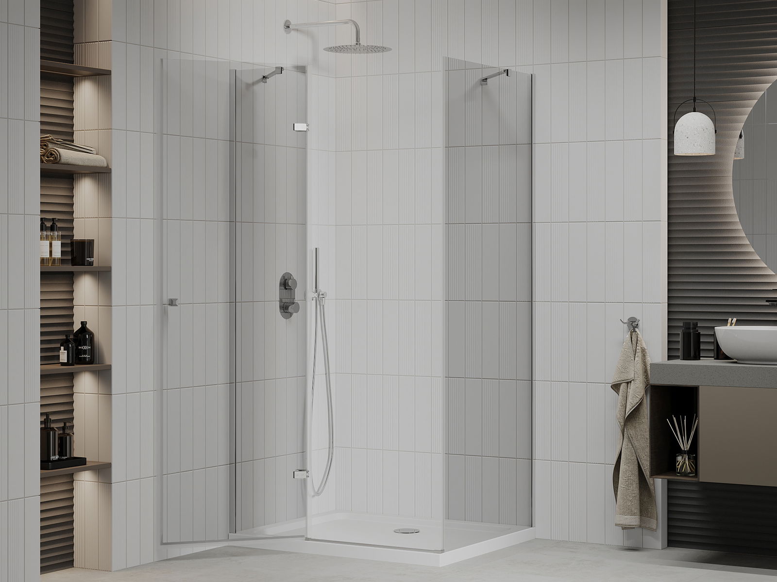 Благодарение на използването на универсалната система за монтаж, душовите врати могат да бъдат монтирани отдясно или отляво, в зависимост от нуждите. Благодарение на това можете лесно да проектирате душ, който е напаснат към пространството в банята.
