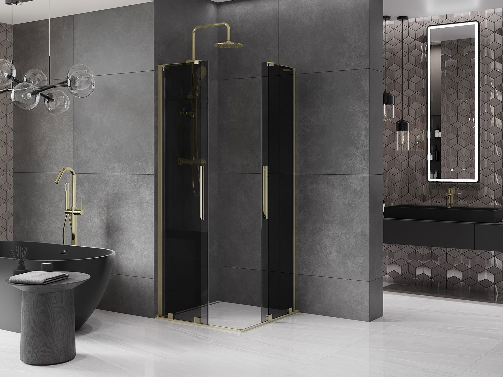 Mexen Velar L Duo плъзгаща се душ кабина 100 x 100 см, графит, златна - 871-100-100-02-43-50