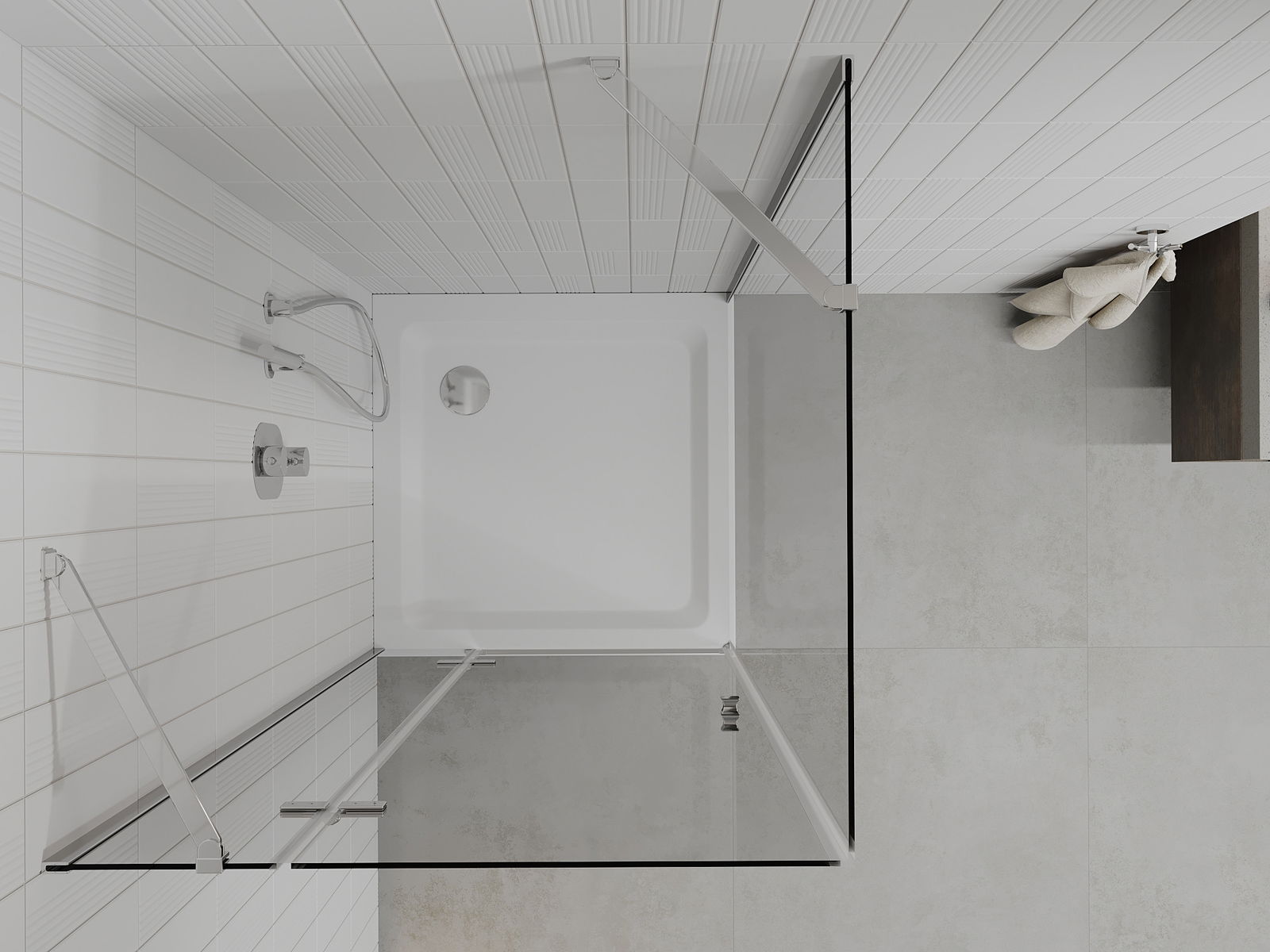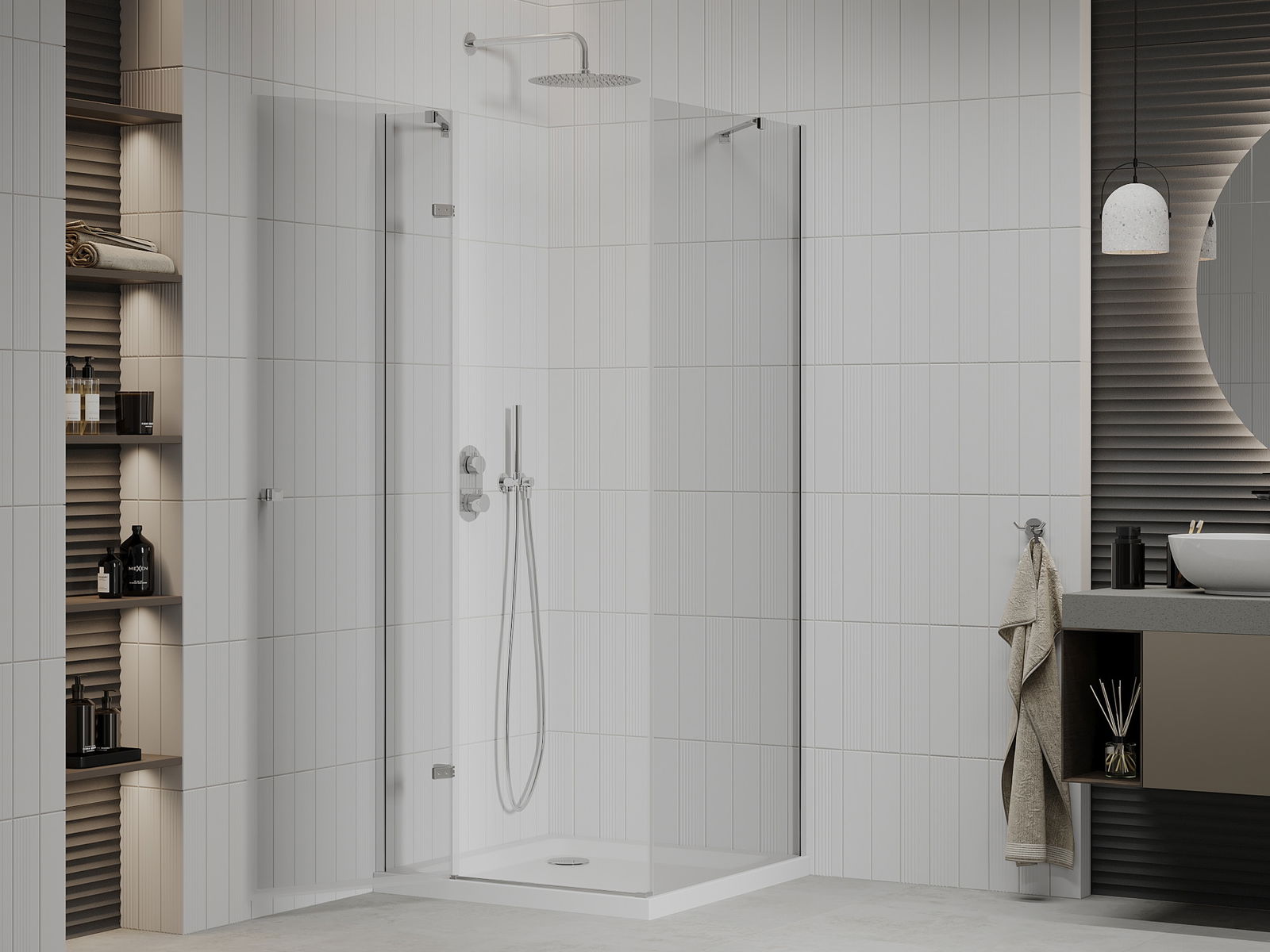 Mexen Roma душ кабина с отваряща врата 80 x 80 см, прозрачна, хромирана + плосък поддушови корито - 854-080-080-01-00-4010