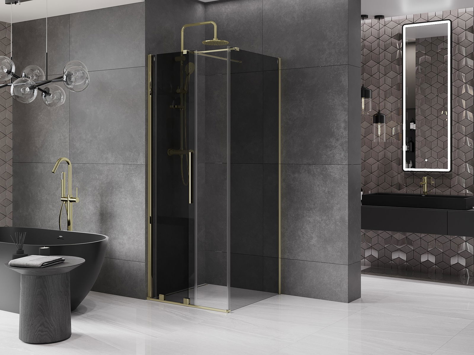 Mexen Velar плъзгаща се душ кабина 90 x 90 см, графит, златна - 871-090-090-41-50