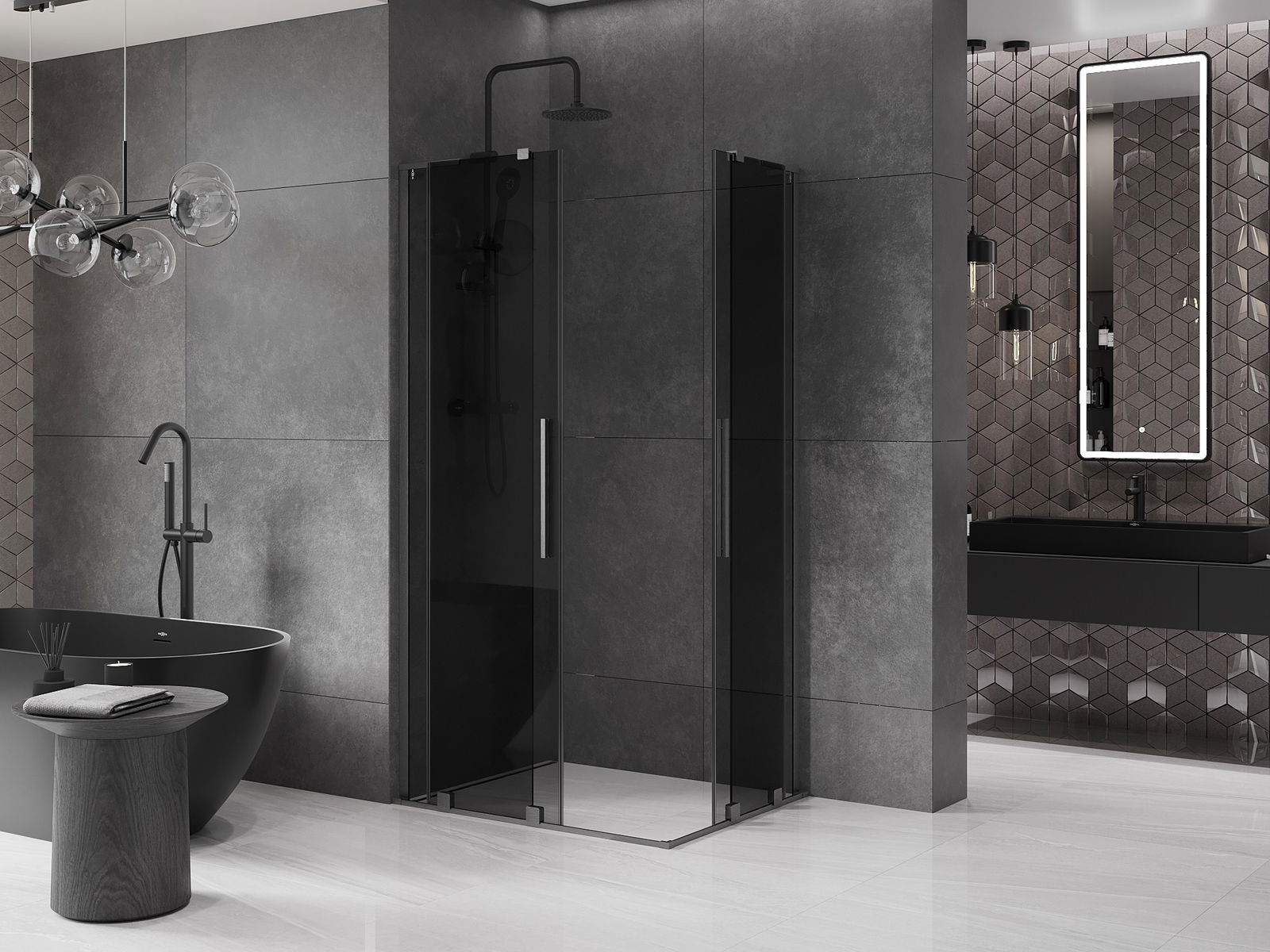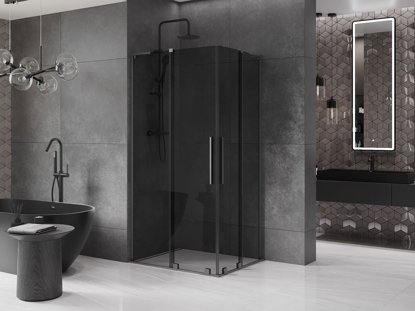 Mexen Velar L Двойна плъзгаща се душ кабина 90 x 80 см, графит, четка сив - 871-090-080-02-43-66