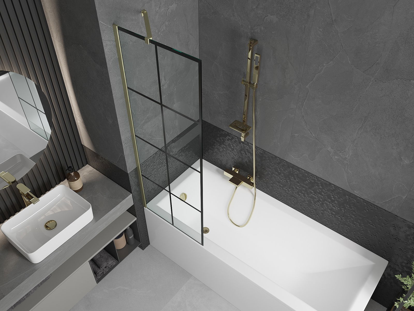 Mexen Next параван за вана 1-крилен 60 x 150 см, черна решетка, златист матиран - 895-060-000-00-77-55