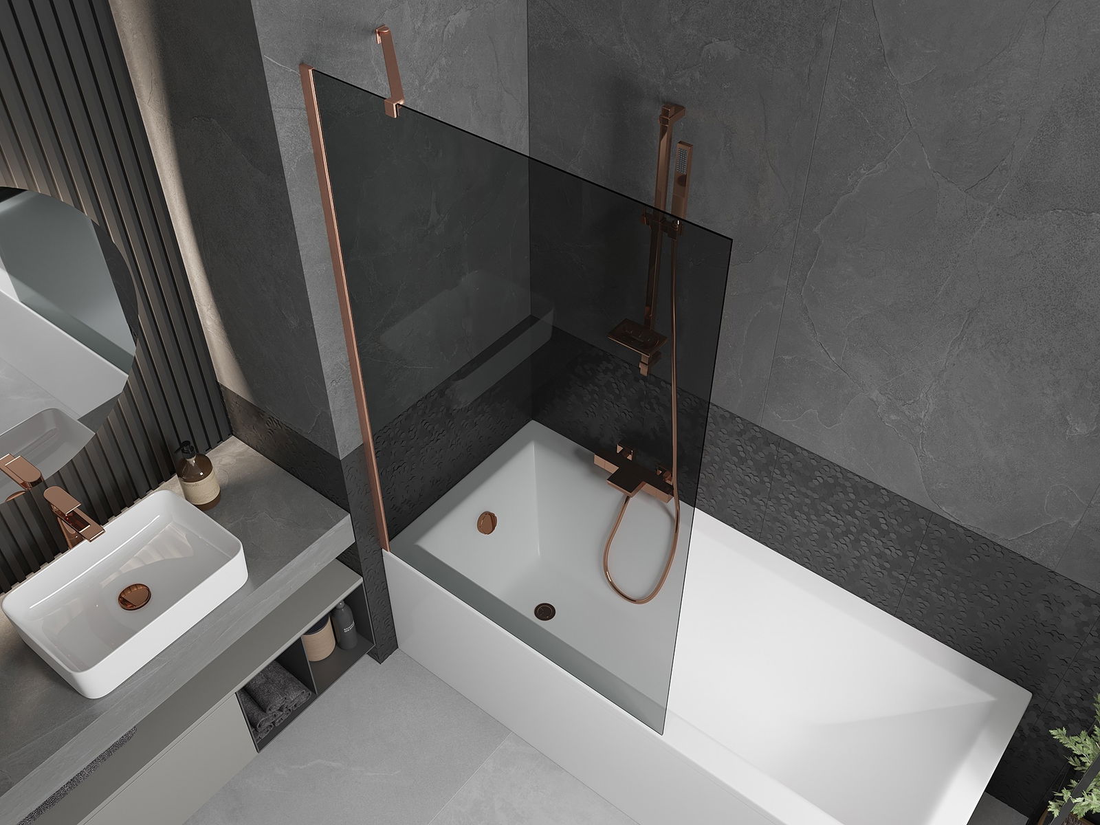 Mexen Next преграда за вана 1-крило 100 x 150 cm, графит, четкана мед - 895-100-000-00-40-65