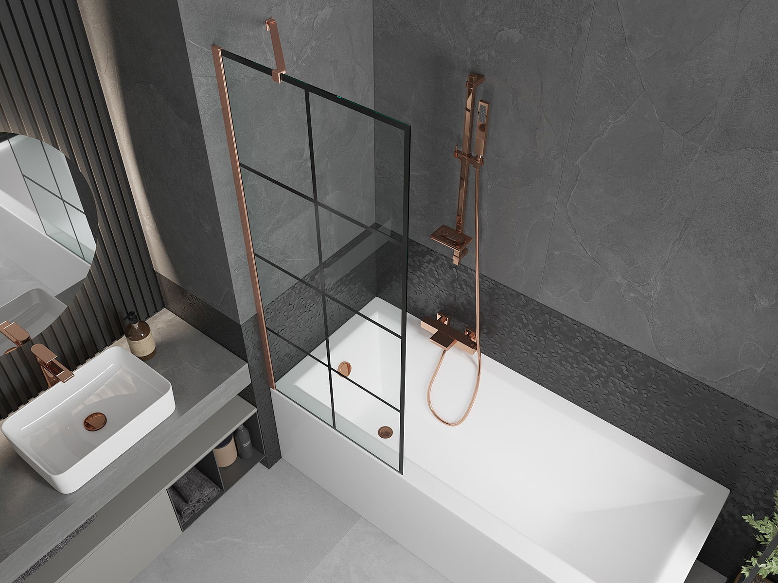 Mexen Next душ параван еднокрилен 70 x 150 см, черна решетка, четкована мед - 895-070-000-00-77-65