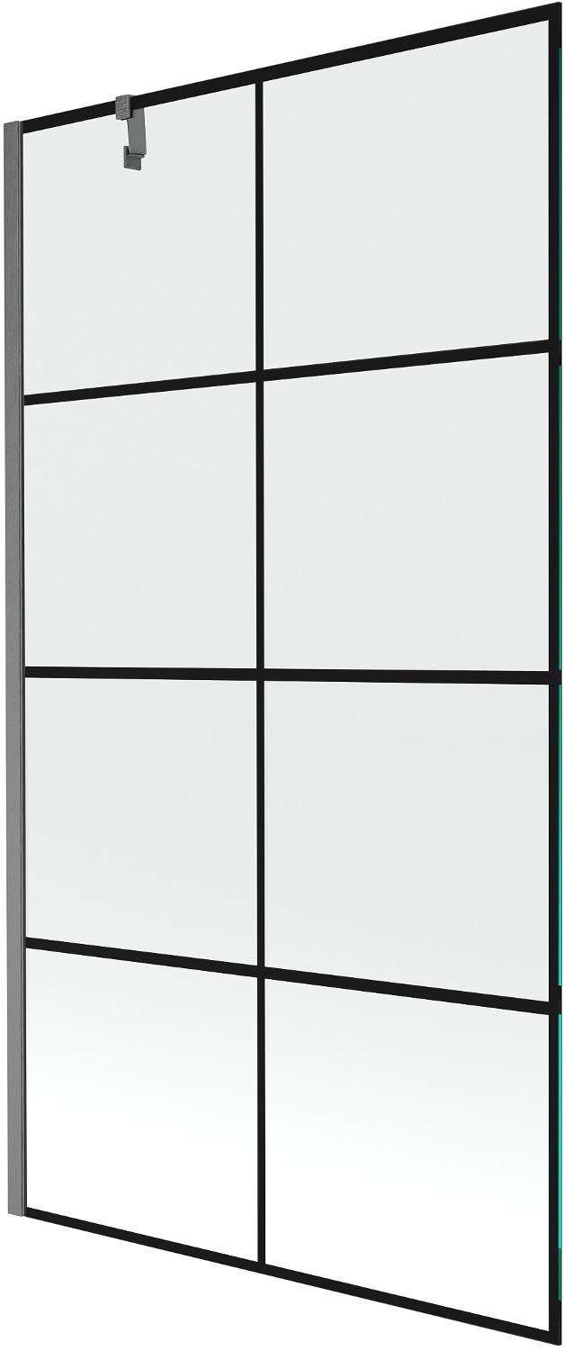Mexen Next параван за вана, еднокрилен, 100 x 150 см, черна решетка, четкан gun gray - 895-100-000-00-77-66