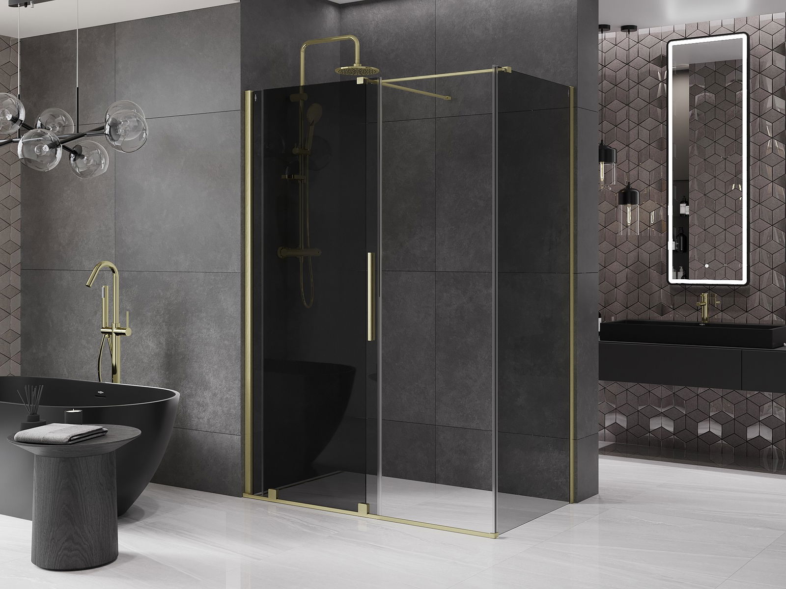 Mexen Velar плъзгаща се душ кабина 130 x 70 см, графит, четкано злато - 871-130-070-41-55
