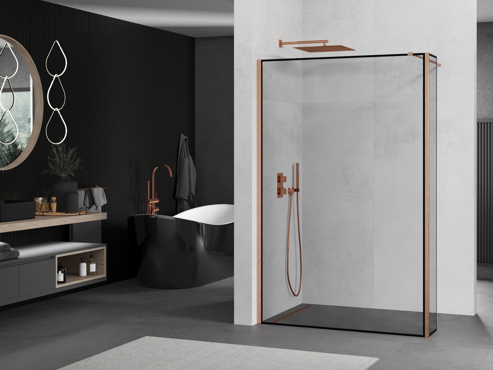 Mexen Kioto стена за душ Walk-in 140 x 40 cm, черна рамка, матирана мед - 800-140-212-65-70-040