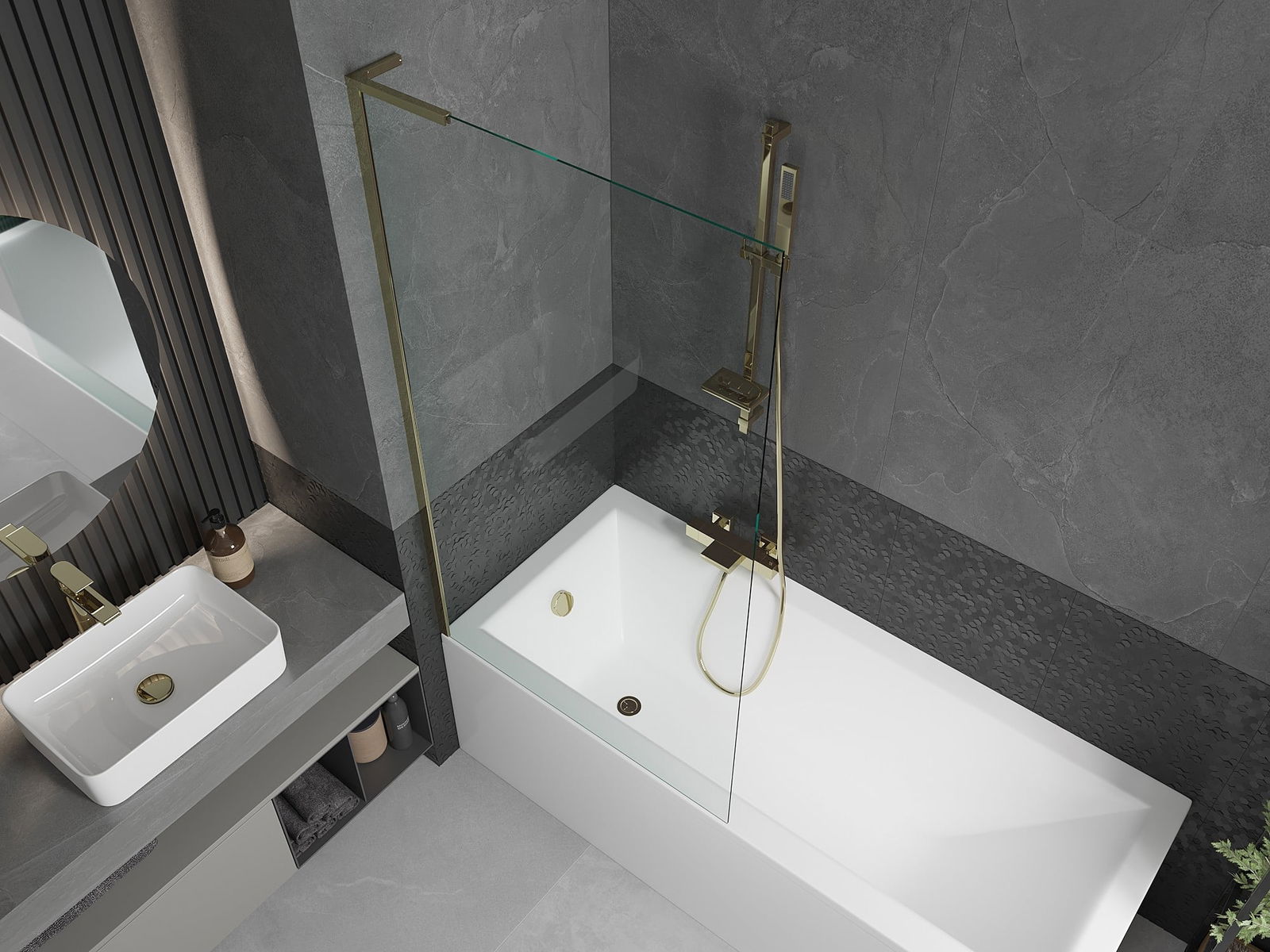 Mexen Next L еднокрилен преграда за вана 90 x 150 см, прозрачен, златен