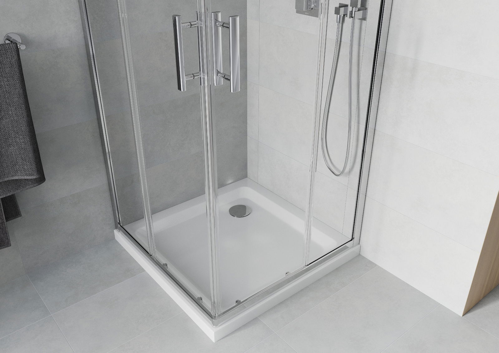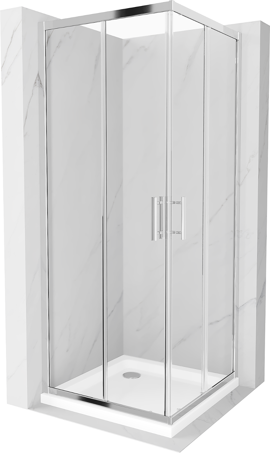 Mexen Rio правоъгълна душ кабина 70 x 70 см, прозрачна, хром + поддушово корито Flat, бяло - 860-070-070-01-00-4010