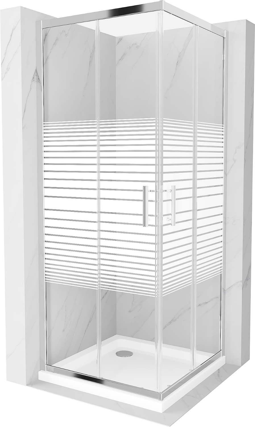 Mexen Rio Квадратна душ кабина 70 x 70 cm, бели линии, хром + поддушово корито Flat, бял - 860-070-070-01-20-4010