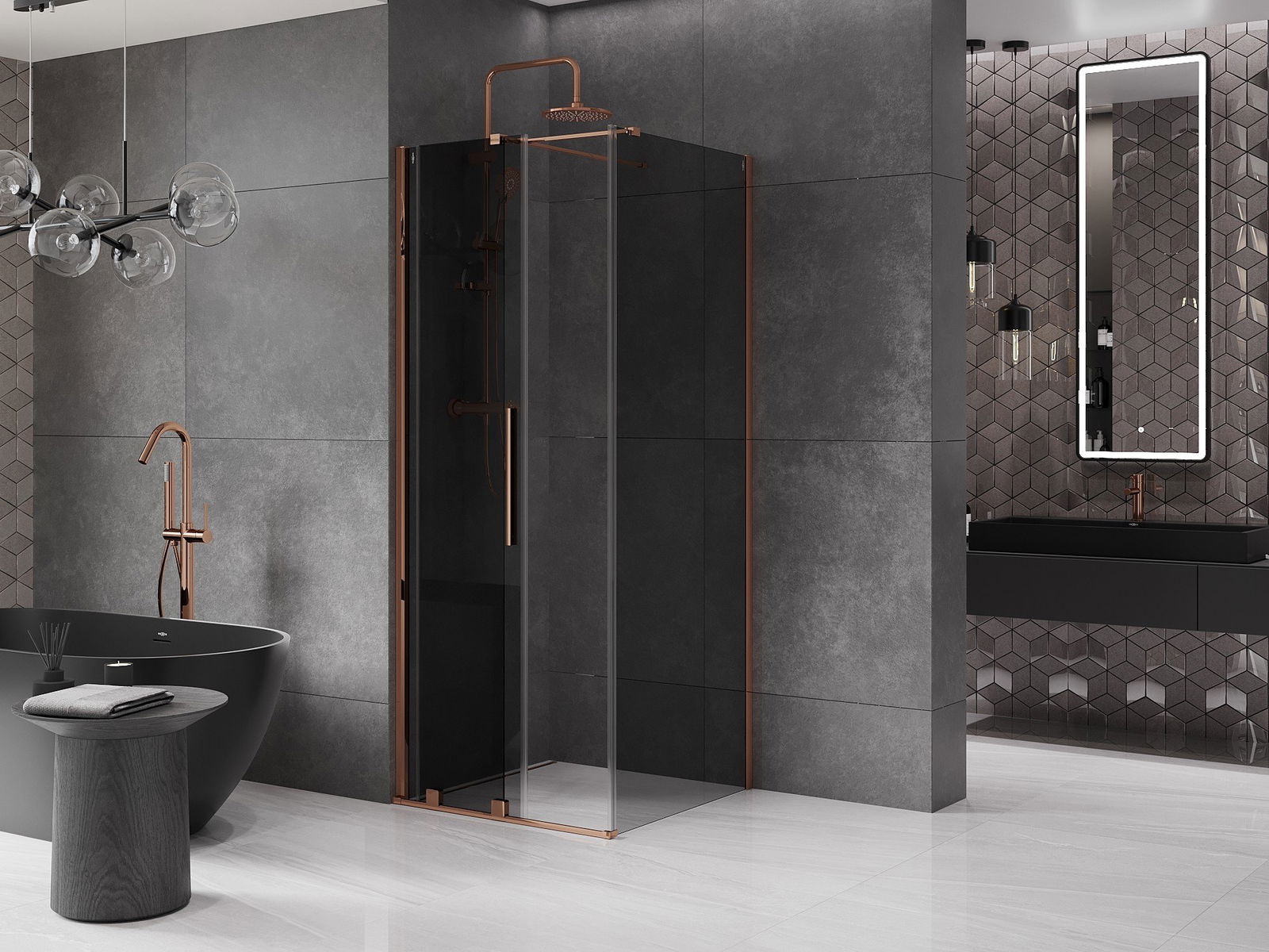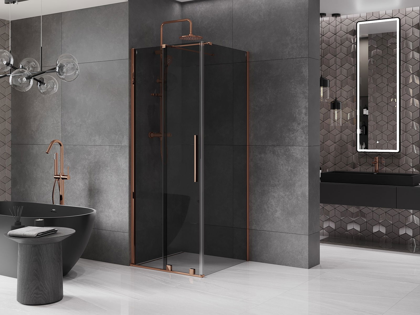 Mexen Velar плъзгаща се душ кабина 100 x 100 см, графит, розово злато - 871-100-100-41-60