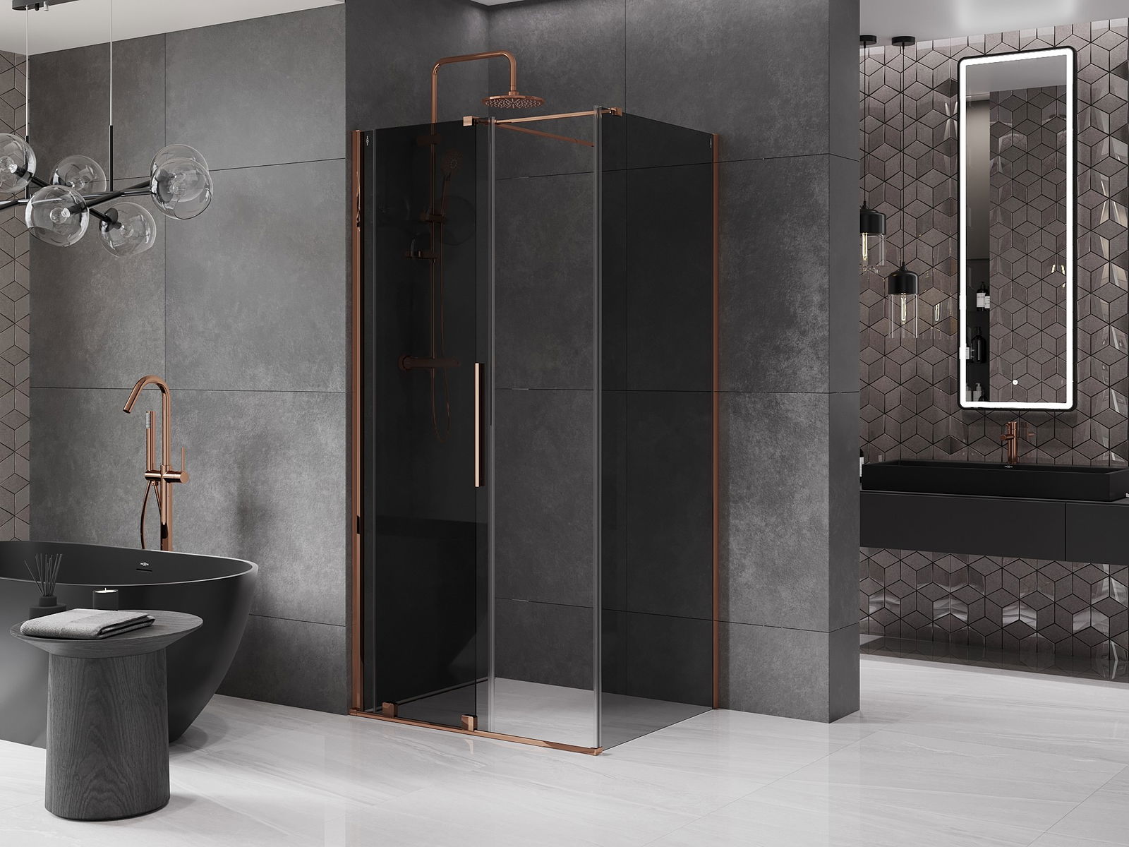Mexen Velar плъзгаща се душ кабина 120 x 90 cm, графит, розово злато - 871-120-090-41-60