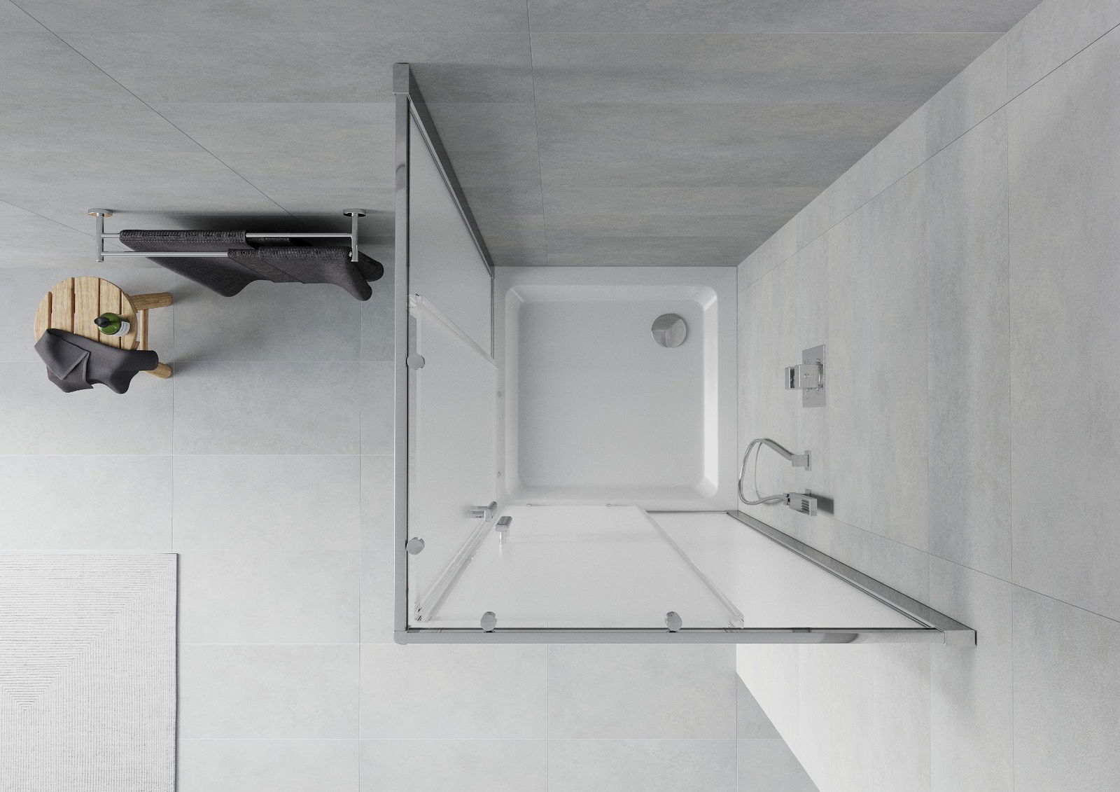 Плъзгащите се врати се движат по специални релси и не изискват допълнително пространство за отваряне, поради което са подходящи за по-малки бани. Благодарение на двойните ролки от здрава пластмаса, движението им е плавно.