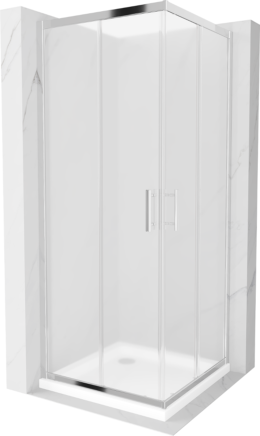 Mexen Rio Квадратна душ кабина 90 x 90 см, матирана, хром + корито Flat, бяло