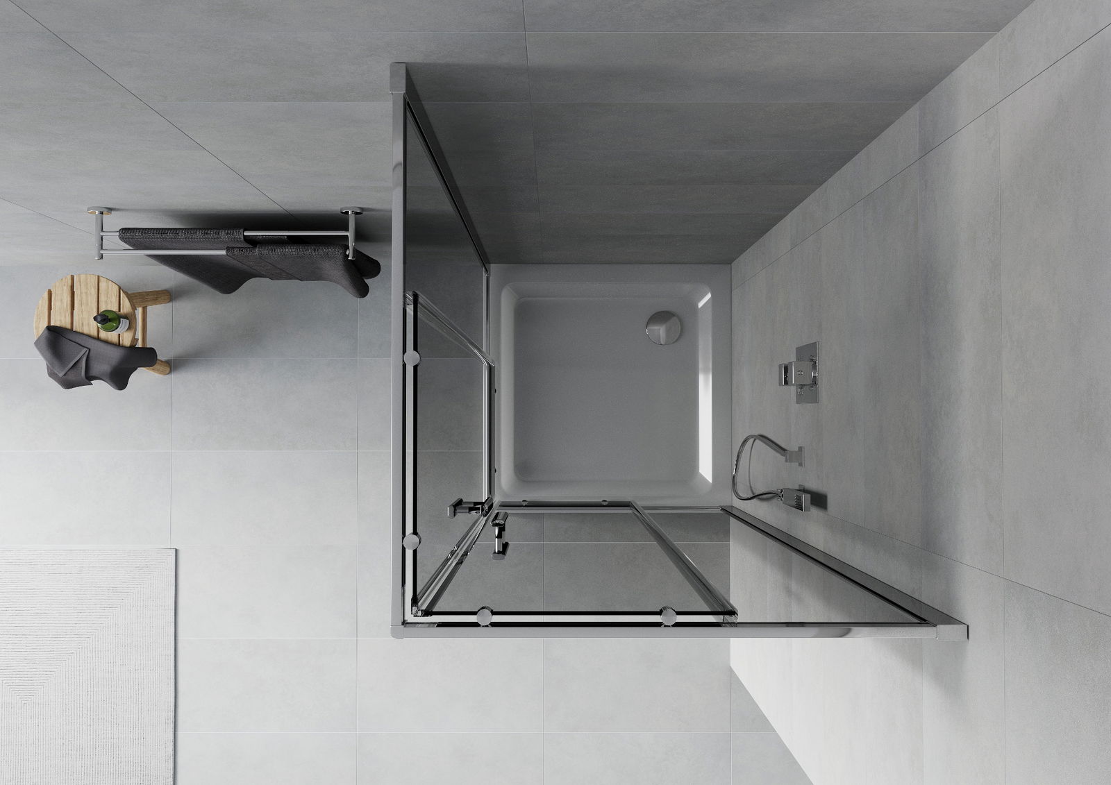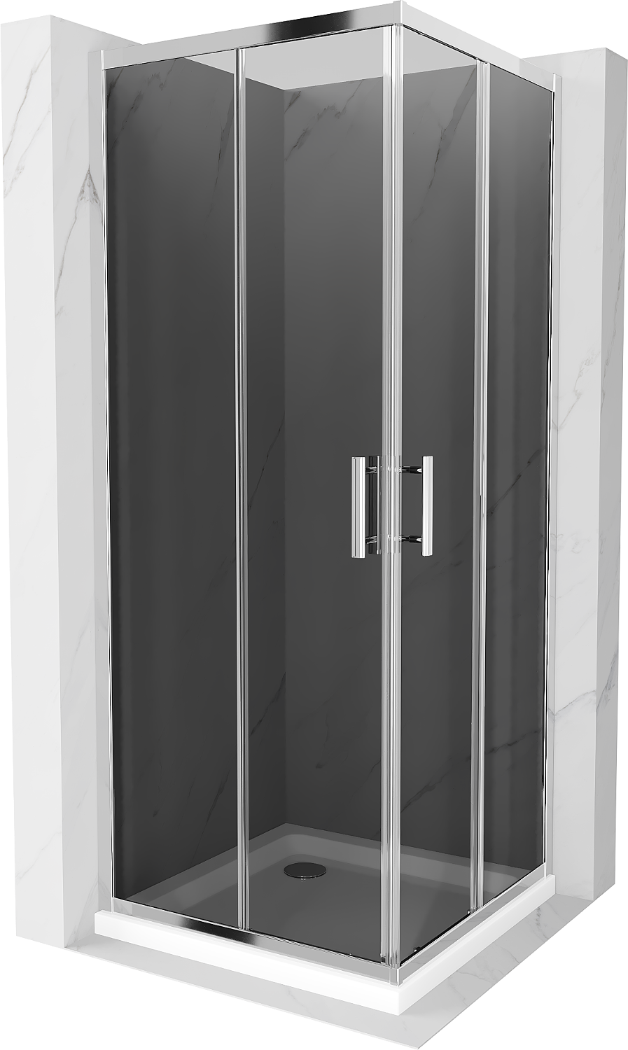Mexen Rio квадратна душ кабина 70 x 70 см, графит, хром + поддушова плоскост Flat, бял - 860-070-070-01-40-4010