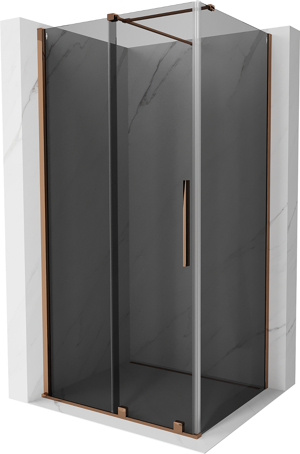 Mexen Velar плъзгаща се душ кабина 140 x 100 см, графит, розово злато - 871-140-100-41-60