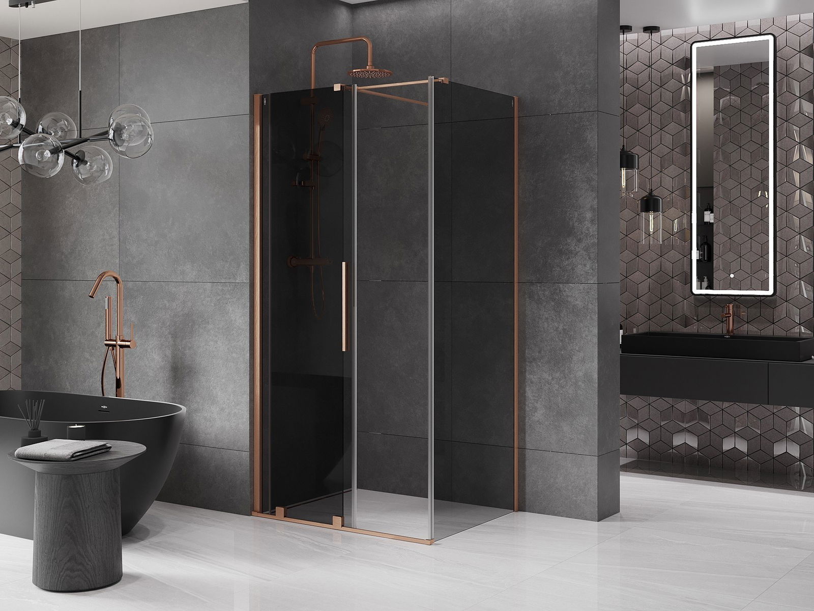 Mexen Velar плъзгаща се душ кабина 100 x 80 см, графит, четкана мед - 871-100-080-41-65