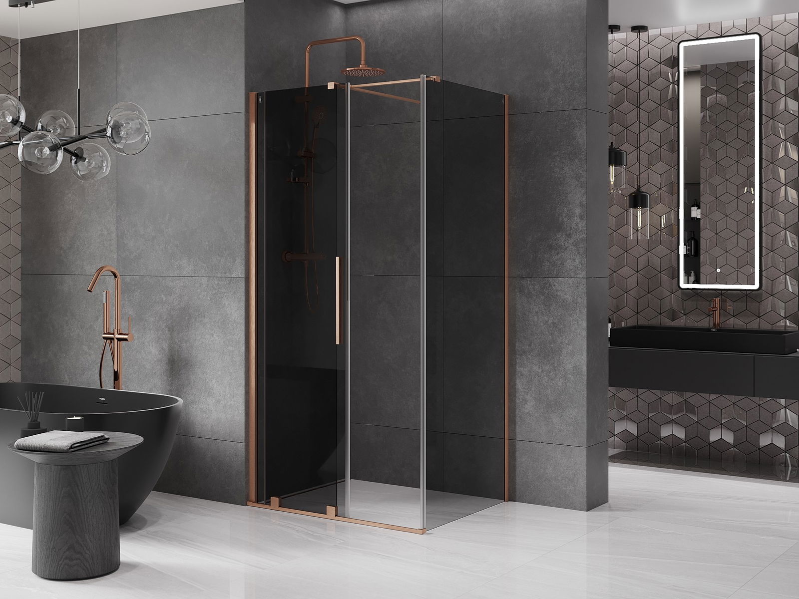 Mexen Velar плъзгаща се душ кабина 110 x 75 см, графит, четкана мед - 871-110-075-41-65