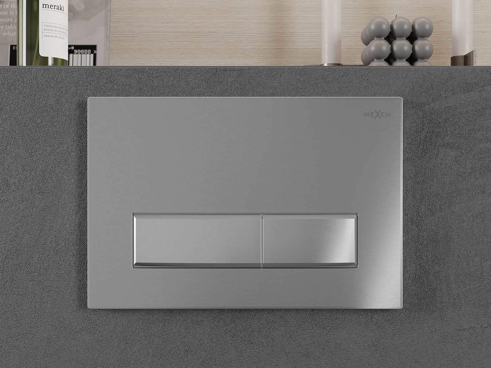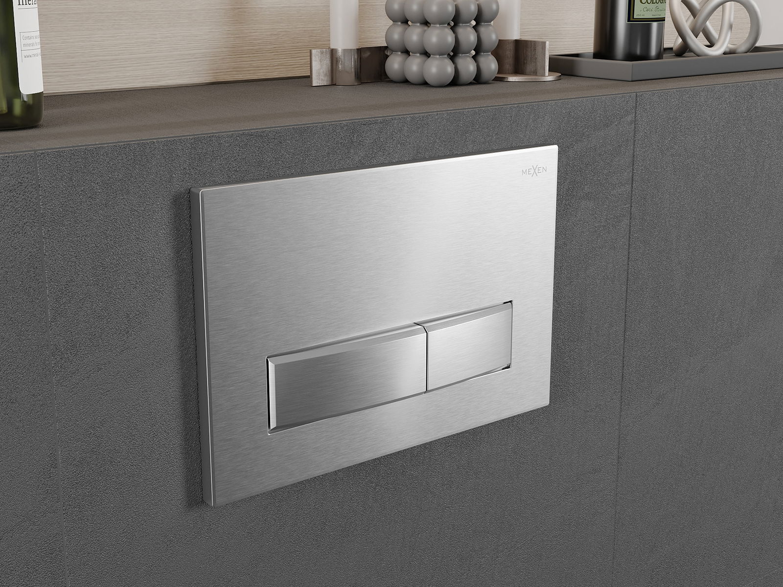 Бутонът пасва на рамката от серията Mexen Fenix Slim, в която е възможно да се инсталира отпред. Популярно и практично решение, особено в баните, където достъпът до бутона отпред е по -удобен.